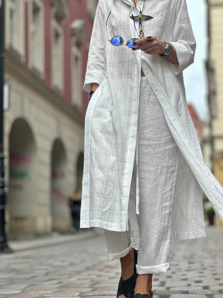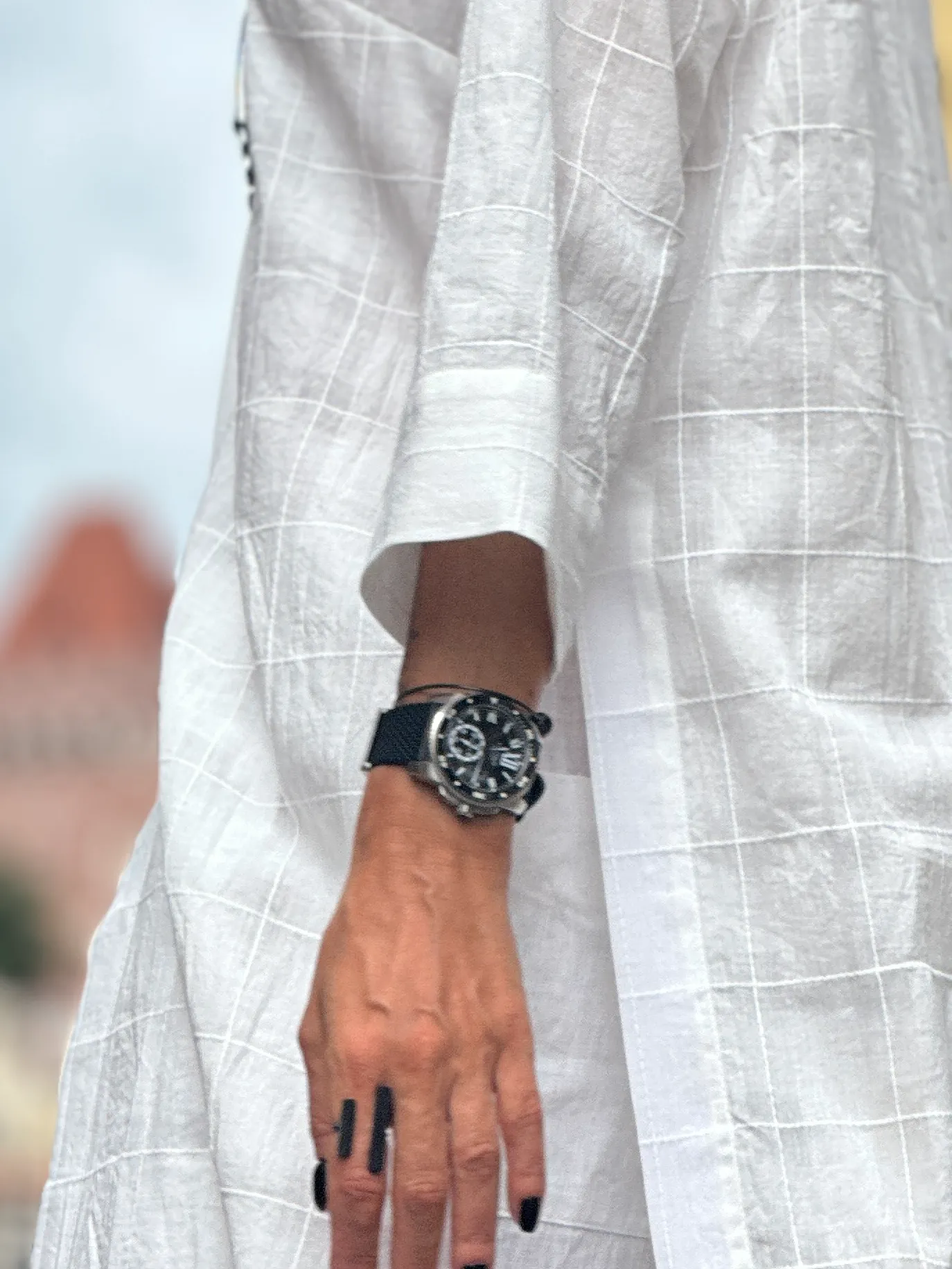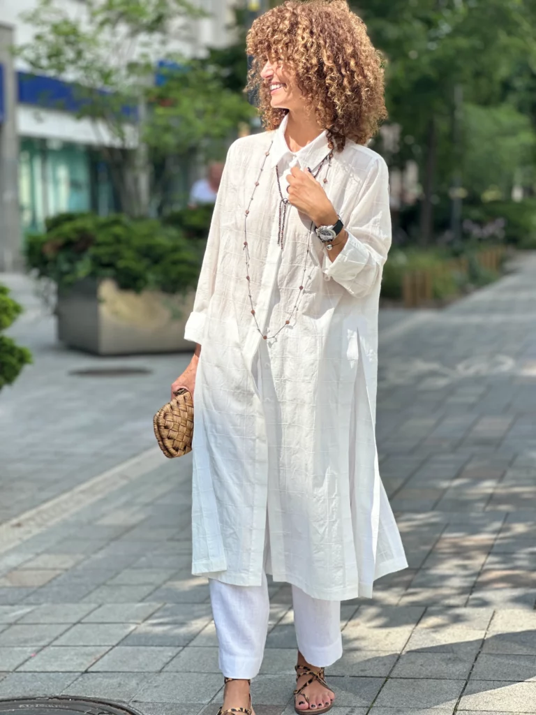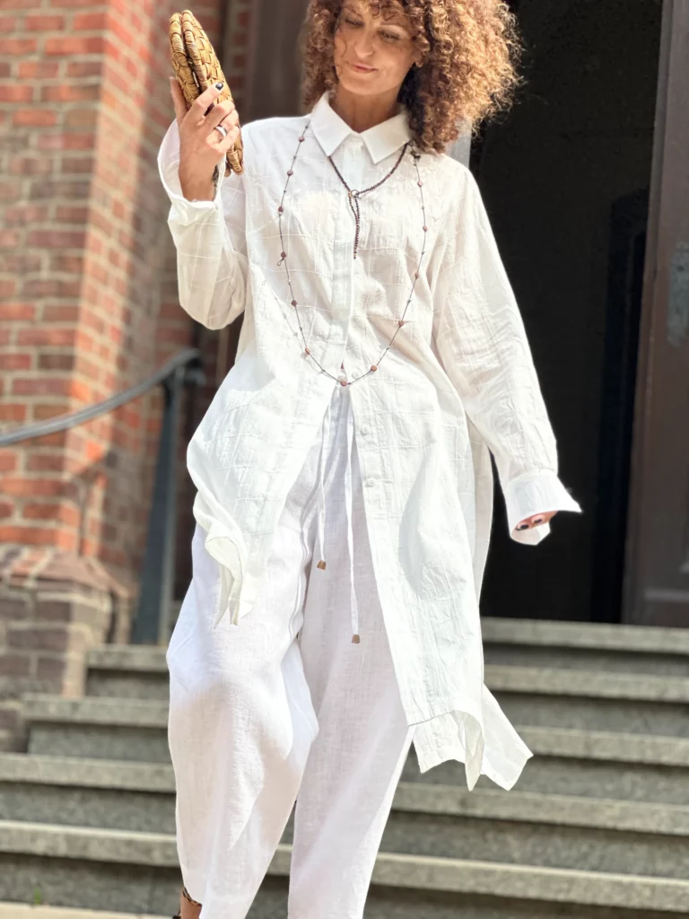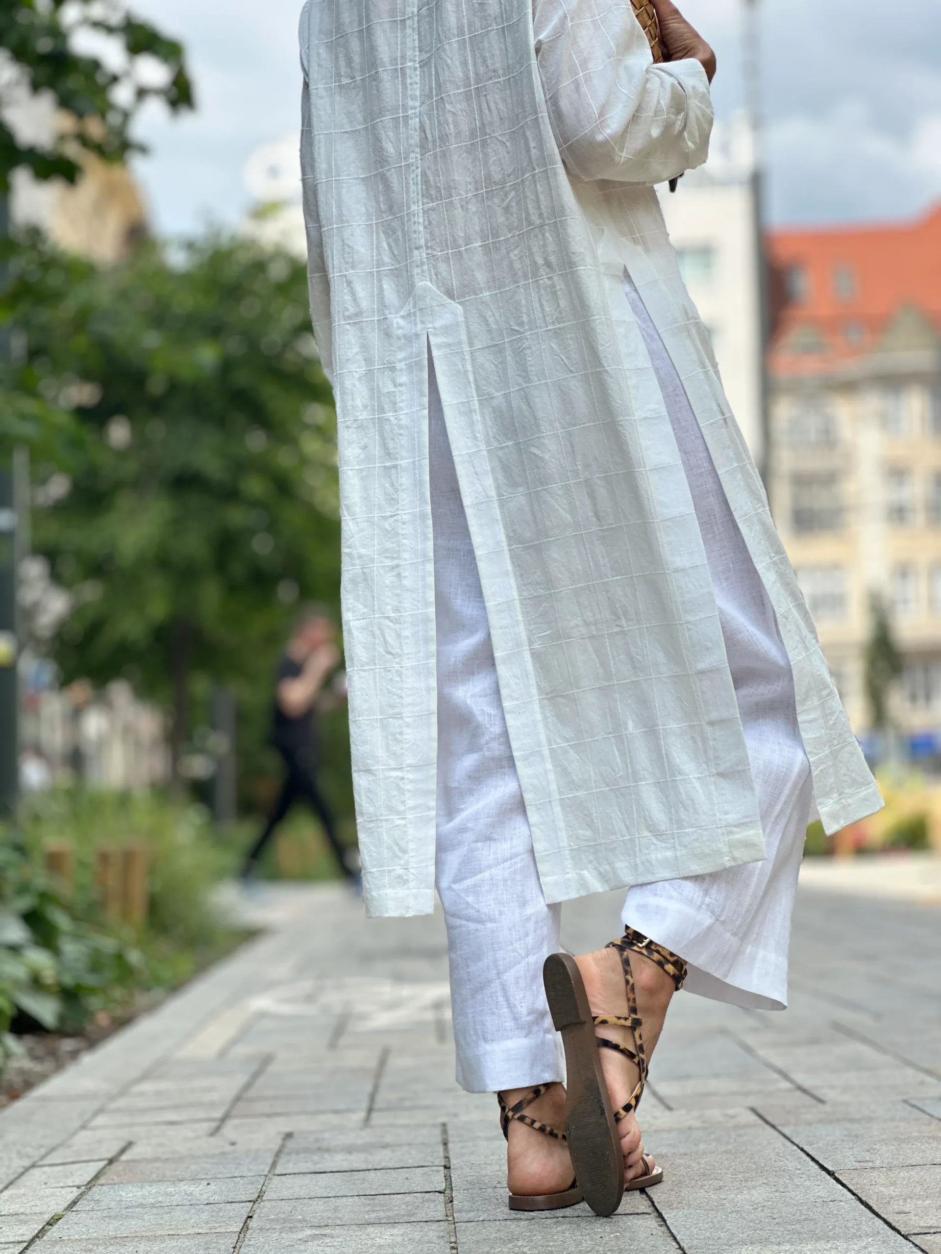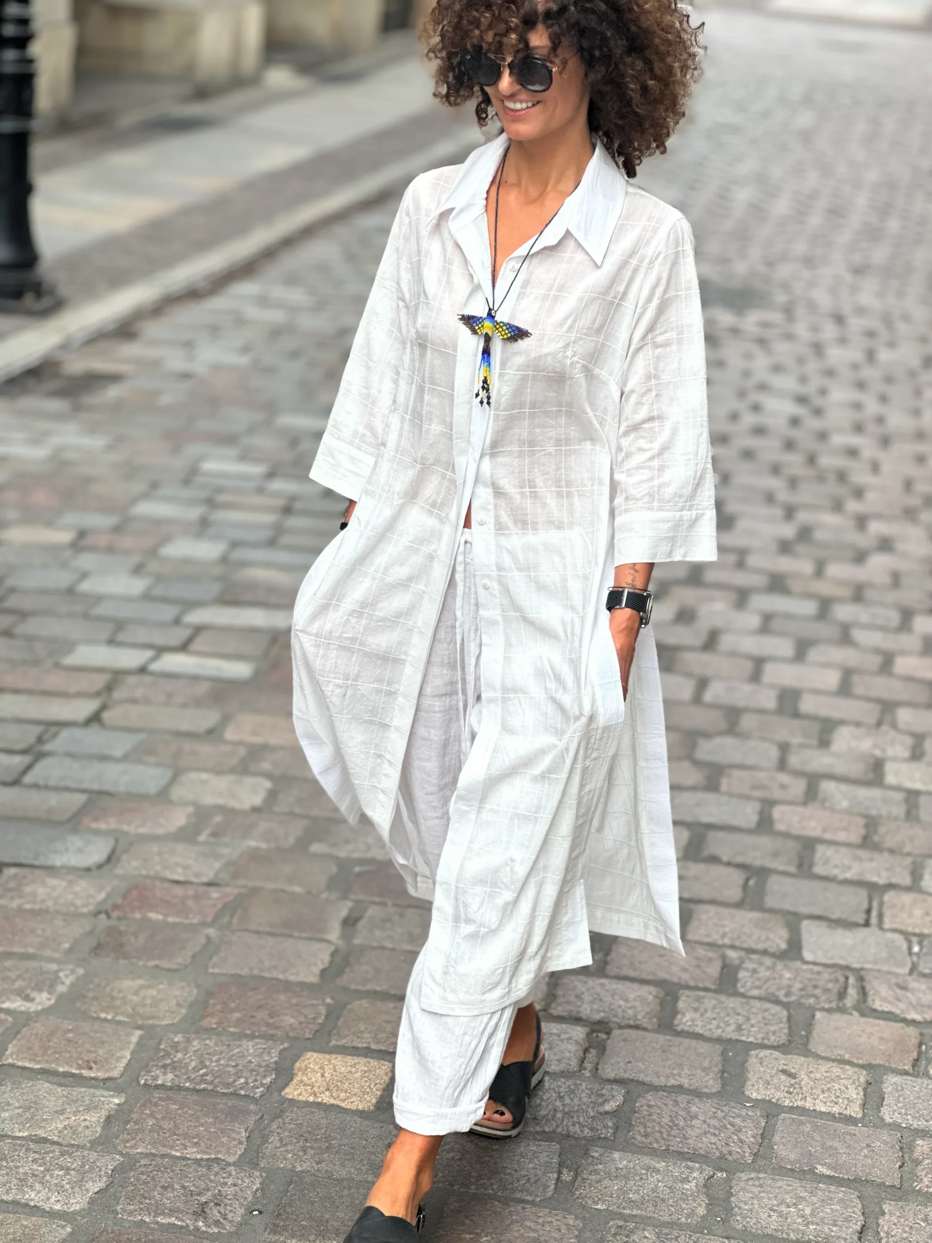Auf den Fotos präsentieren wir die Größe S/M (mit Kolibri) und M/L (mit breiteren Hosen).