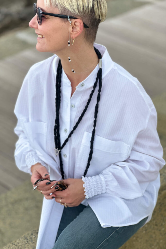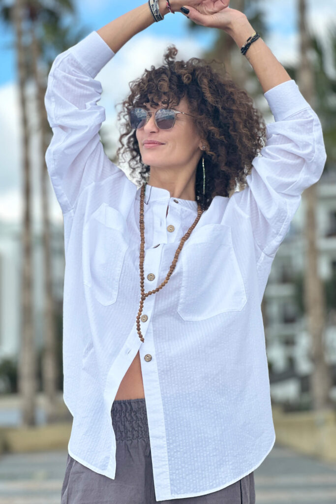 Das klassische weiße Hemd von HER ist natürlich oversized. Bei der Auswahl spielen jedoch oft die Details eine Rolle, ob wir uns dafür entscheiden. Und hier kommen wir diesen Erwartungen entgegen, indem wir Ihnen die Möglichkeit geben, selbst zu entscheiden. Zur Auswahl stehen Knöpfe in Schwarz-Weiß oder in Brauntönen aus natürlichem Material. Kombinieren Sie dazu einen Manschettenknopf mit klassischer Schließe oder verleihen Sie Ihrem Look mit einem gekräuselten Manschettenknopf eine feminine Note. Das Ganze aus Baumwolle mit leichtem Prägemuster.