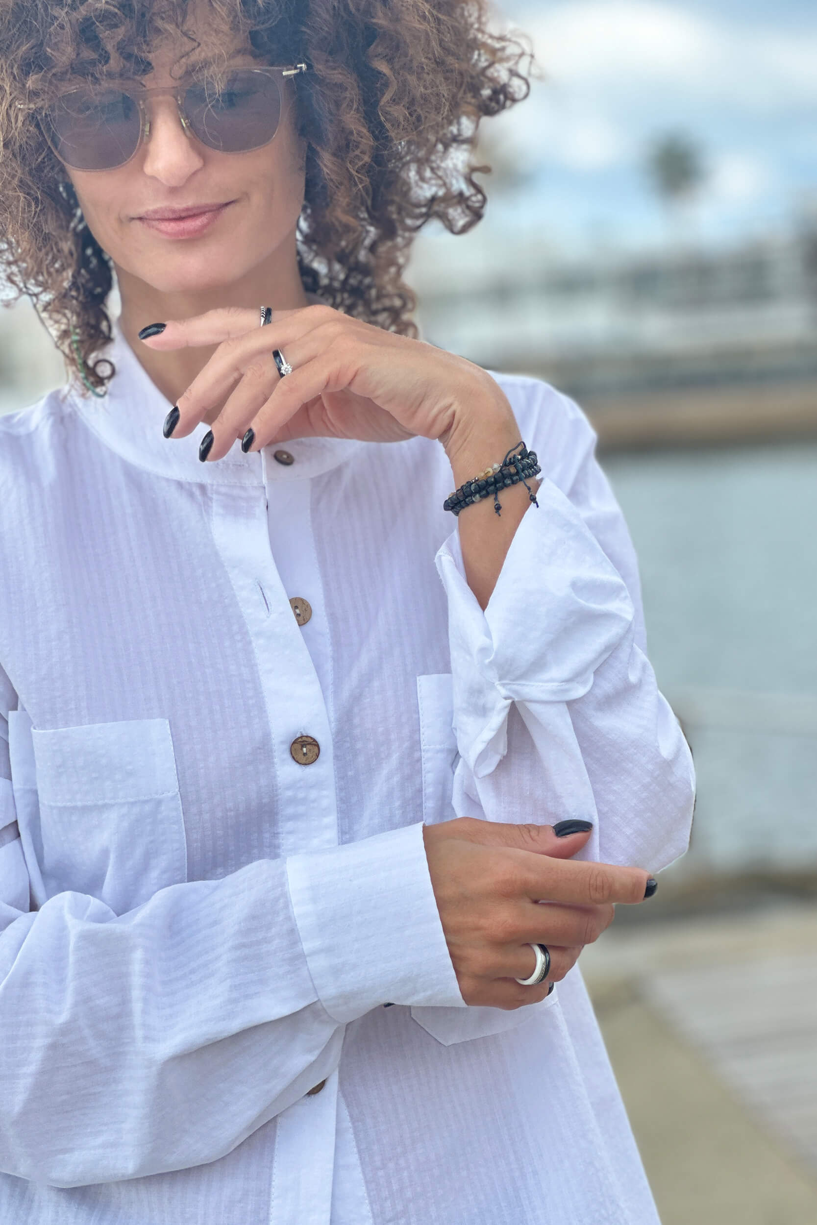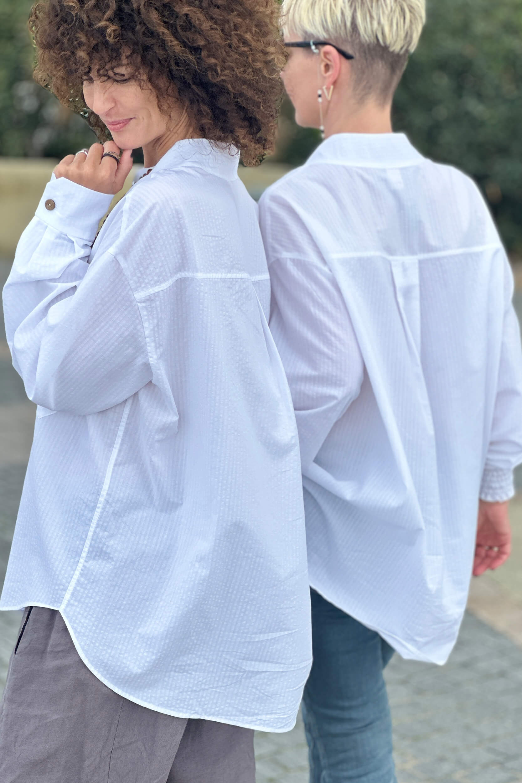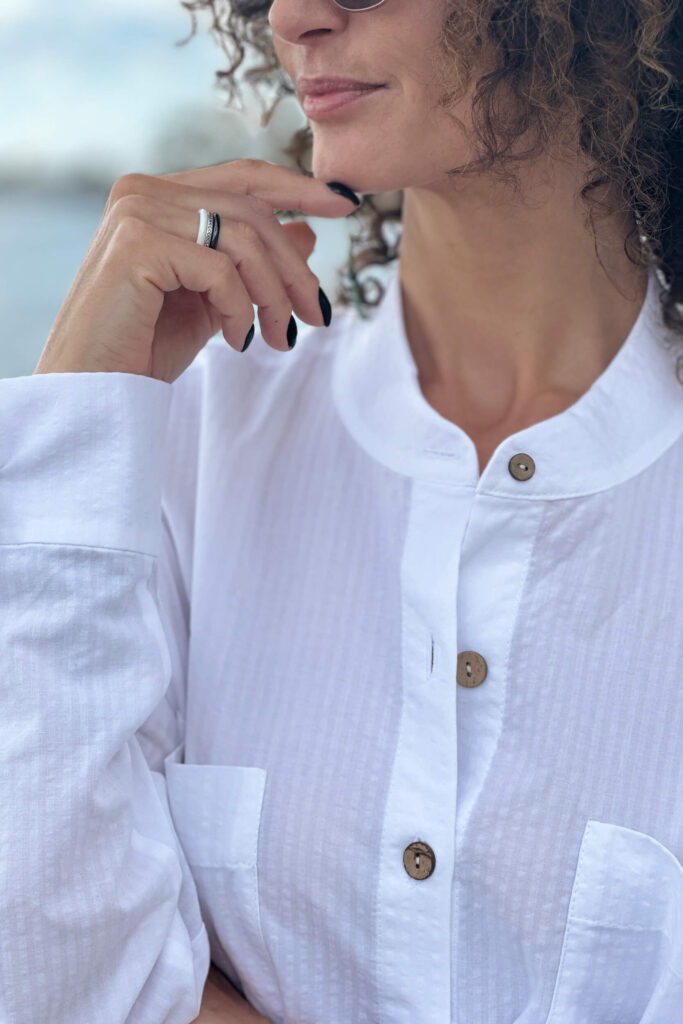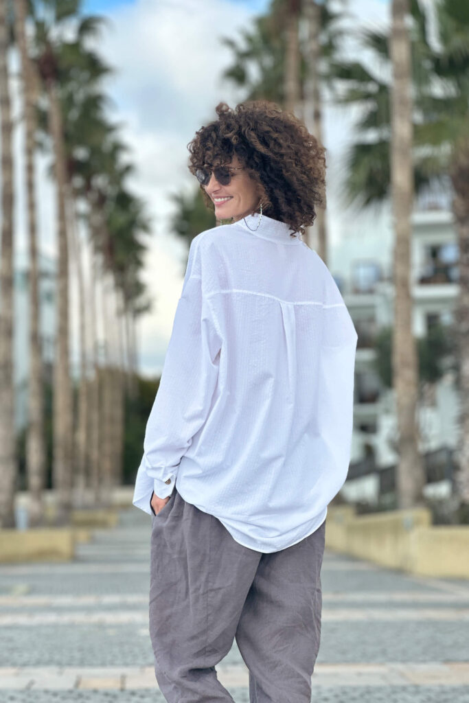 Das klassische weiße Hemd von HER ist natürlich oversized. Bei der Auswahl spielen jedoch oft die Details eine Rolle, ob wir uns dafür entscheiden. Und hier kommen wir diesen Erwartungen entgegen, indem wir Ihnen die Möglichkeit geben, selbst zu entscheiden. Zur Auswahl stehen Knöpfe in Schwarz-Weiß oder in Brauntönen aus natürlichem Material. Kombinieren Sie dazu einen Manschettenknopf mit klassischer Schließe oder verleihen Sie Ihrem Look mit einem gekräuselten Manschettenknopf eine feminine Note. Das Ganze aus Baumwolle mit leichtem Prägemuster.