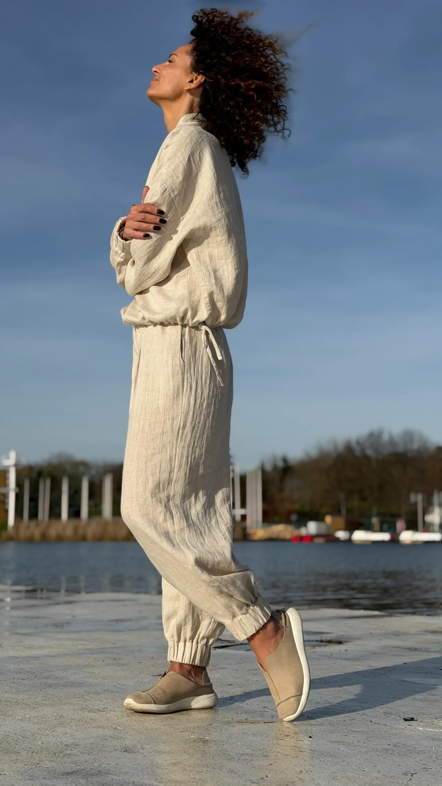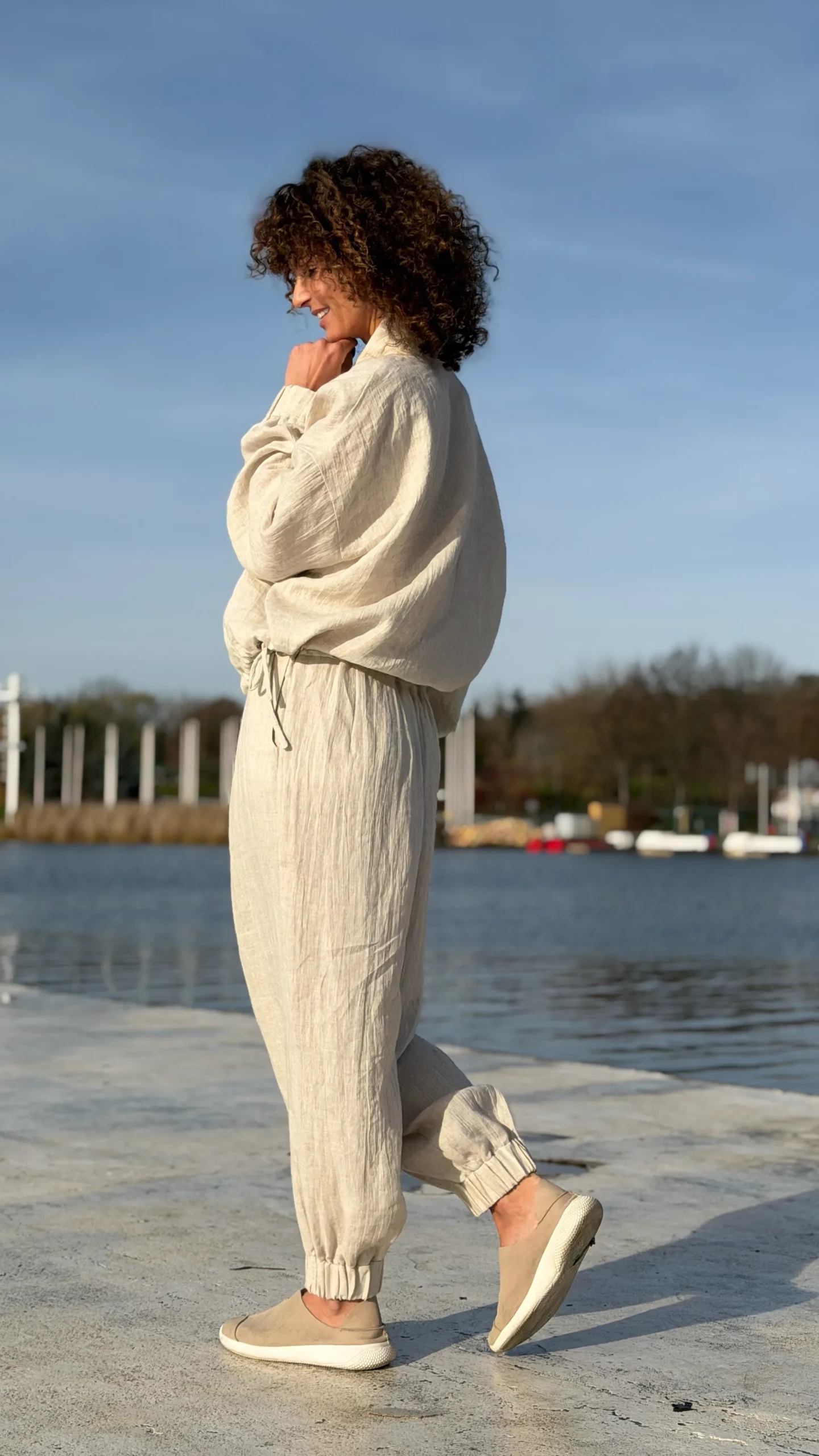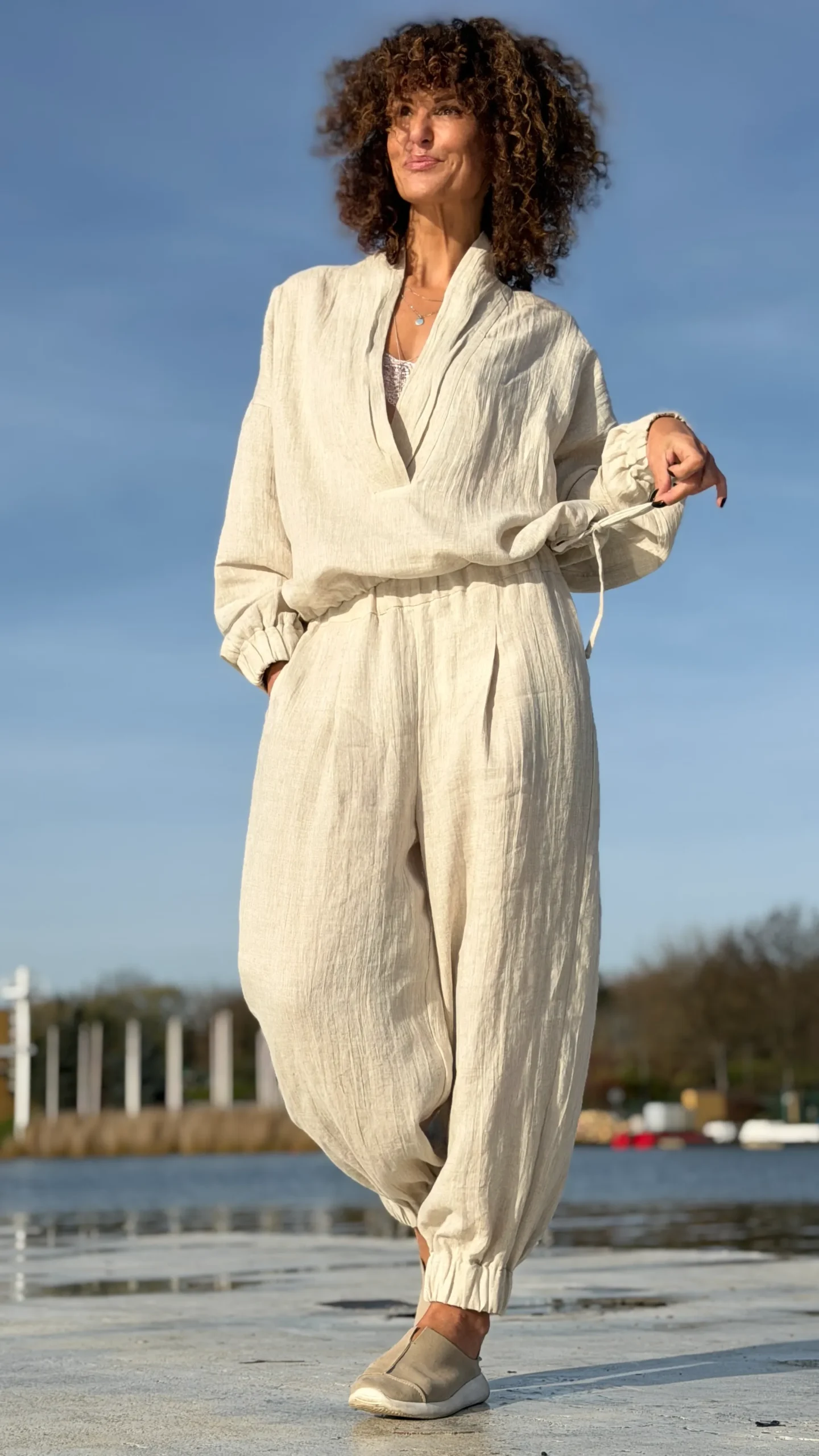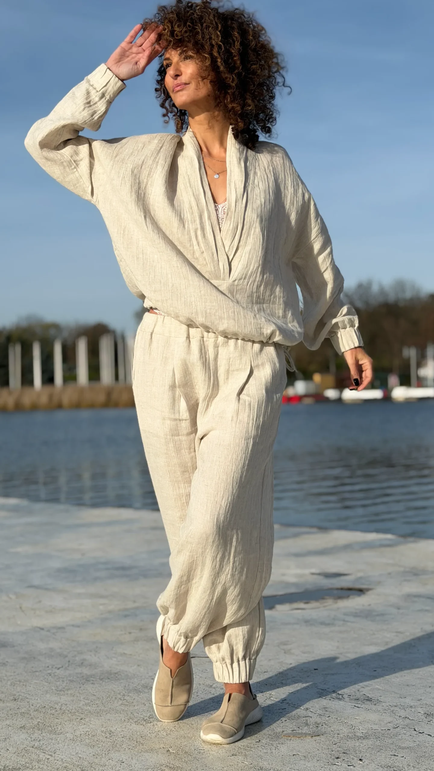 Trainingsanzug aus Leinen mit Ausschnitt: