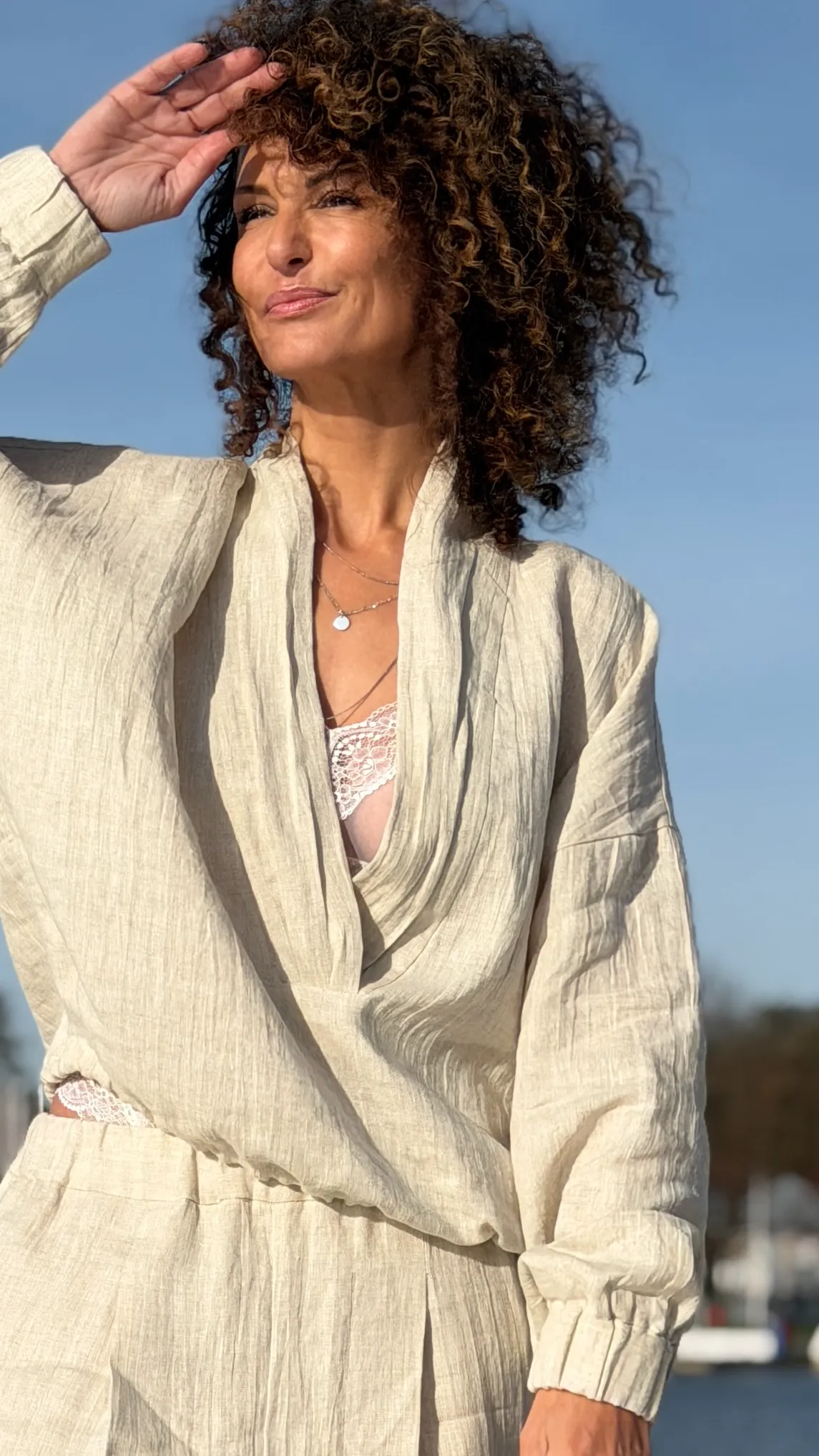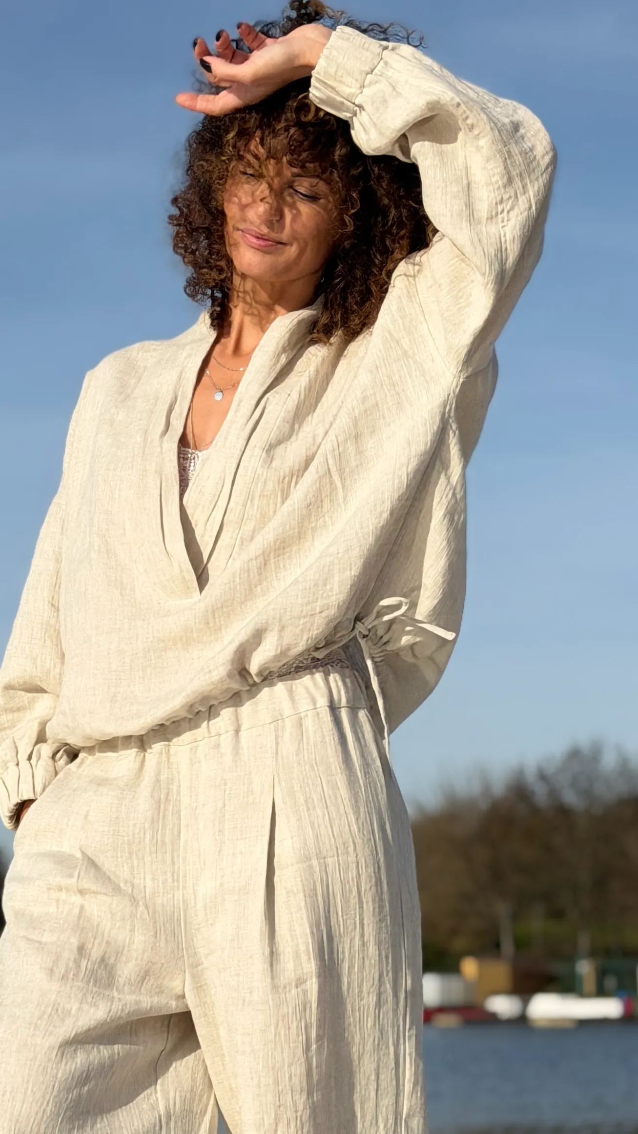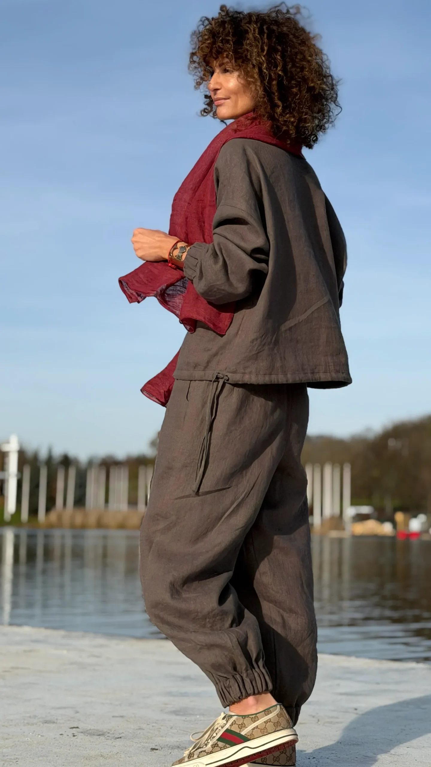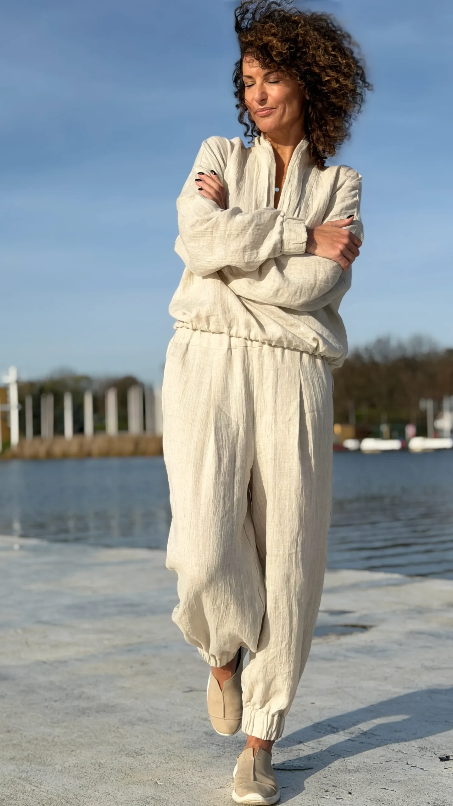 Trainingsanzug aus Leinen mit Ausschnitt: