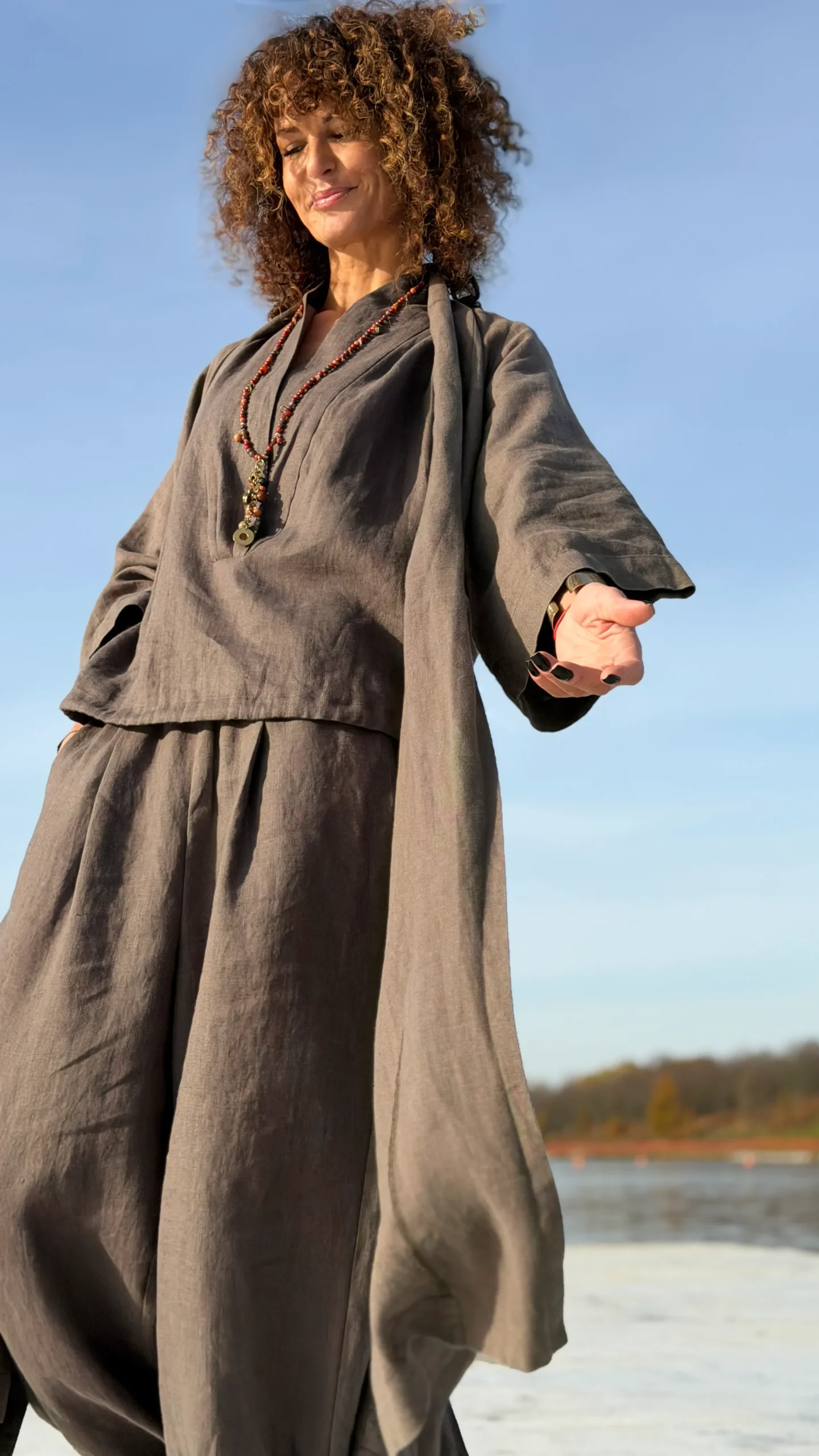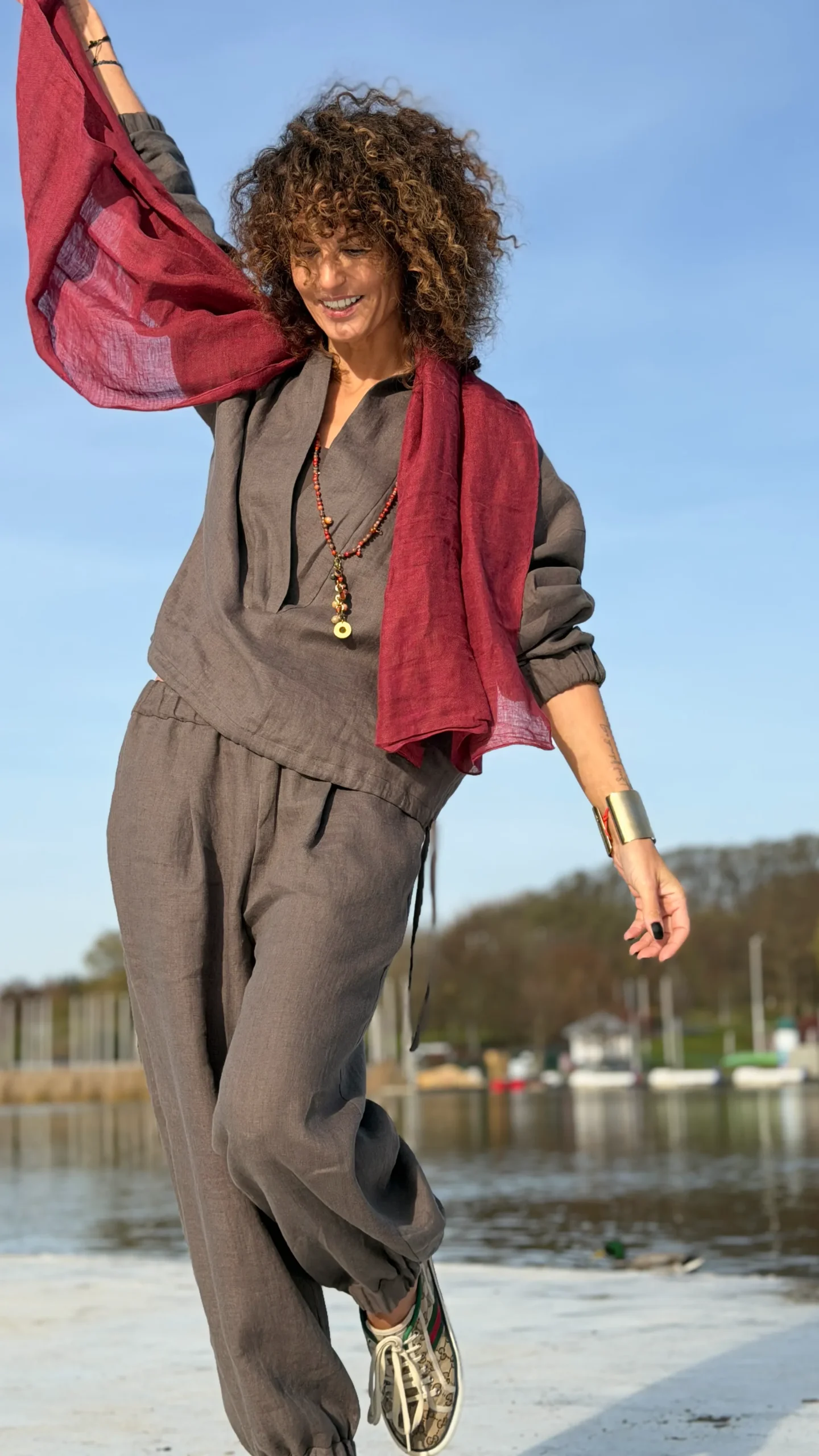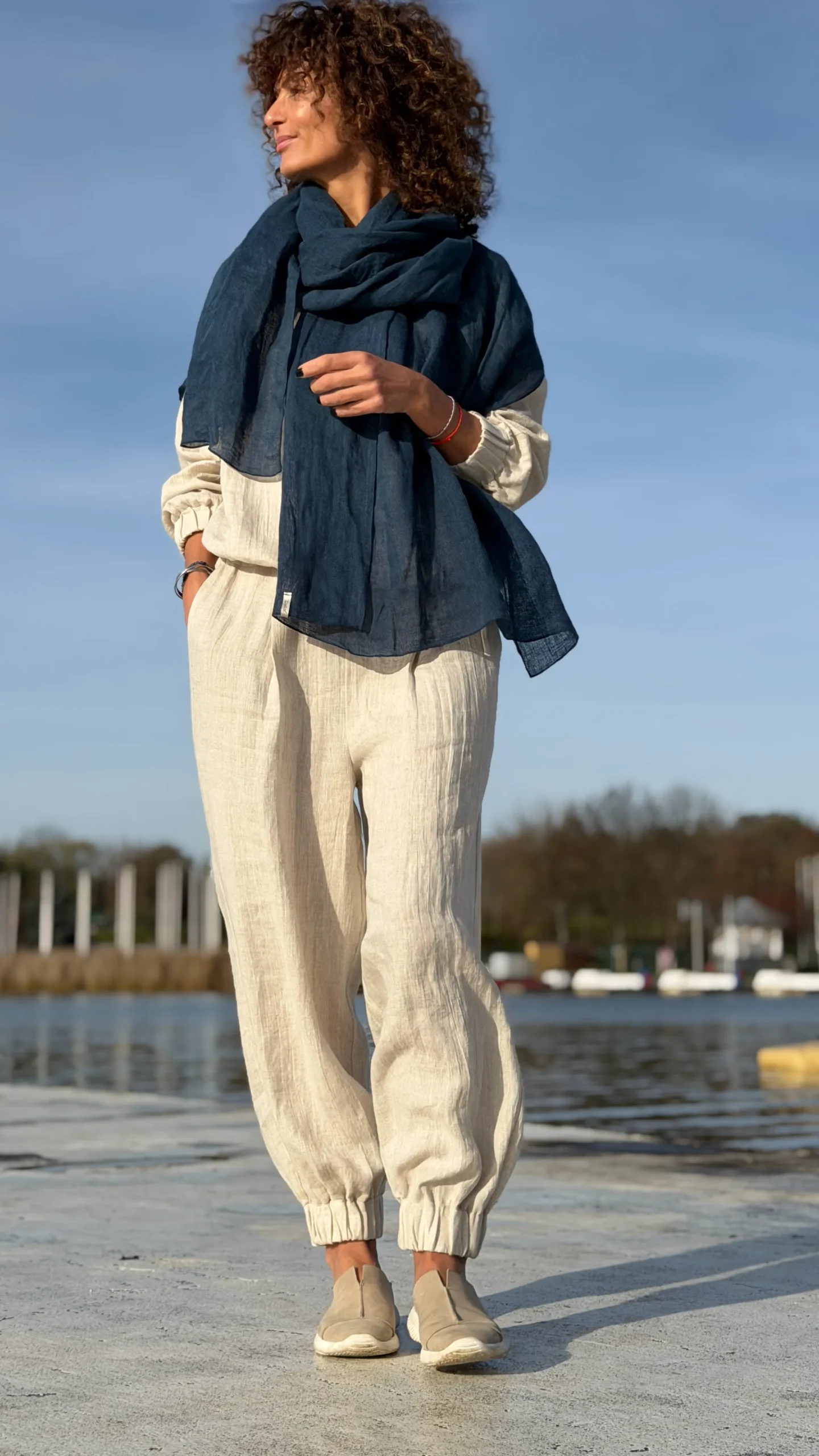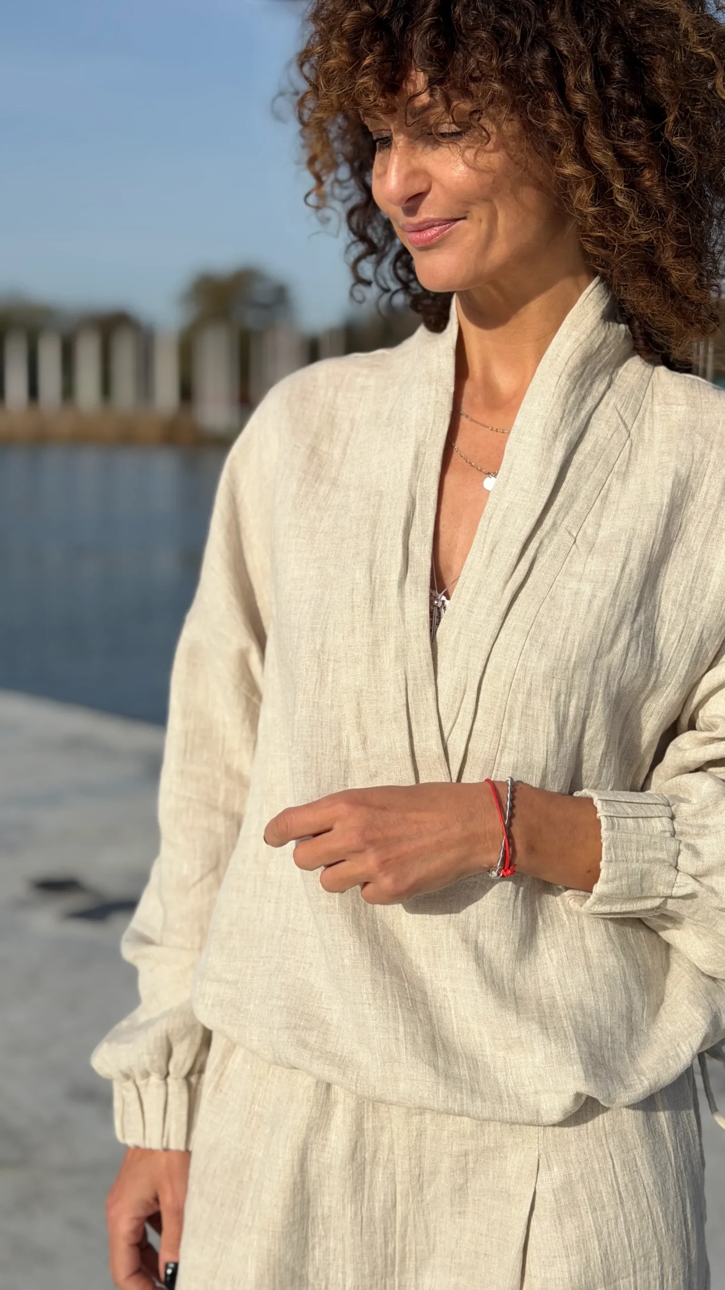 Trainingsanzug aus Leinen mit Ausschnitt: