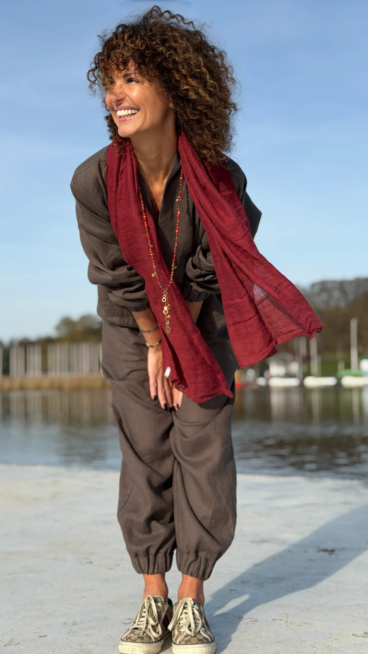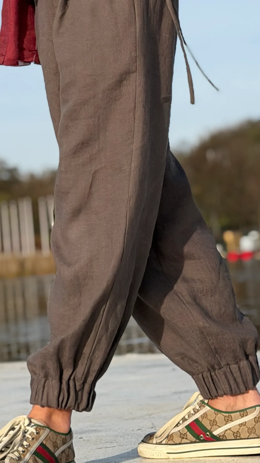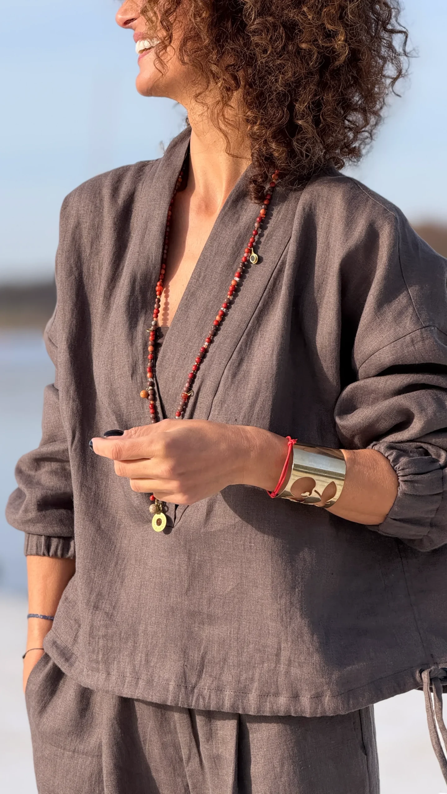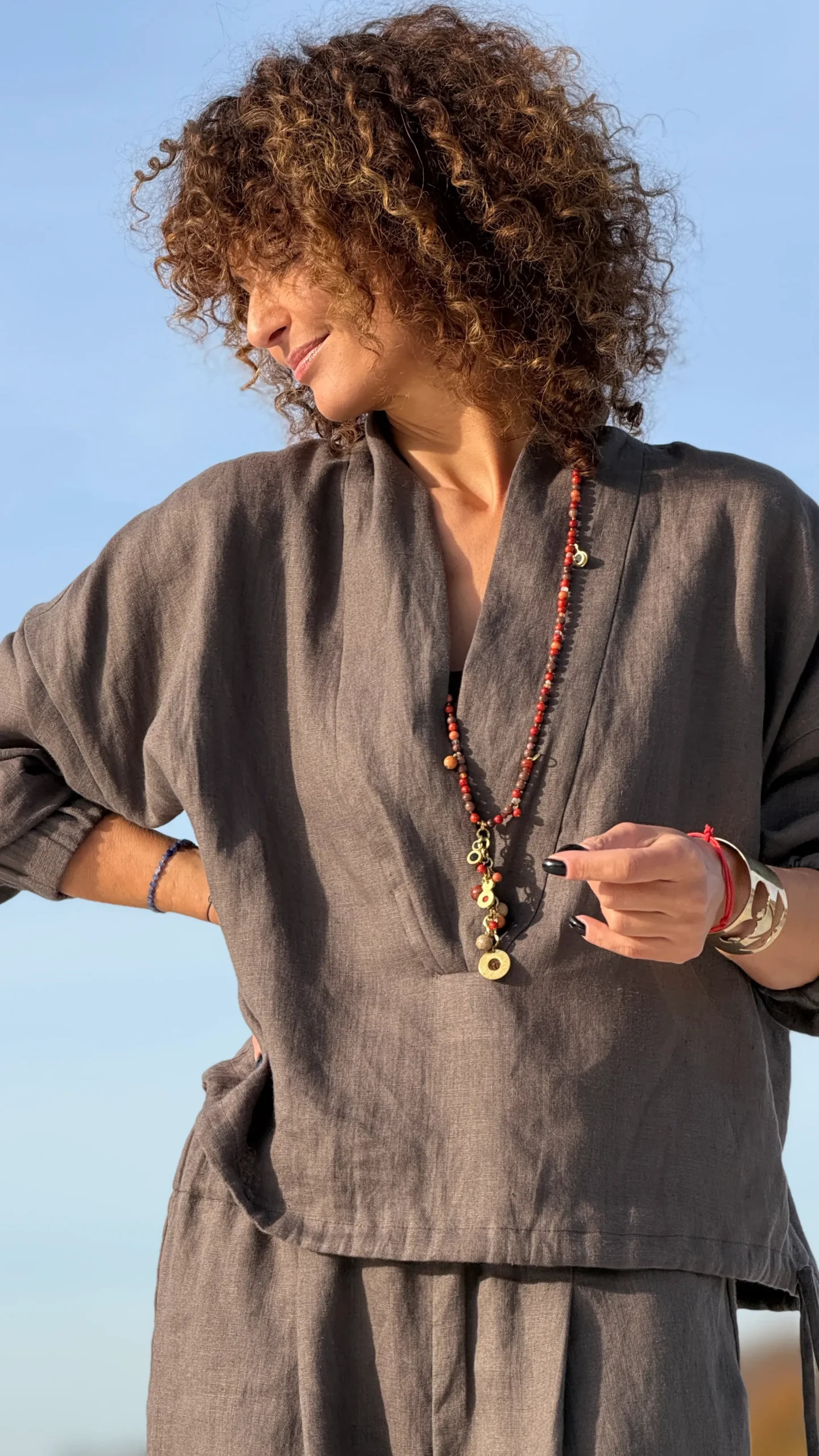 Trainingsanzug aus Leinen mit Ausschnitt: