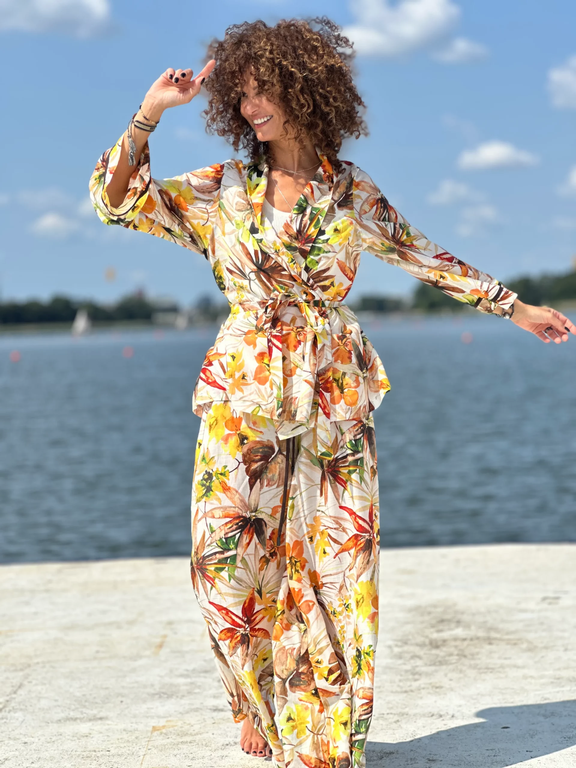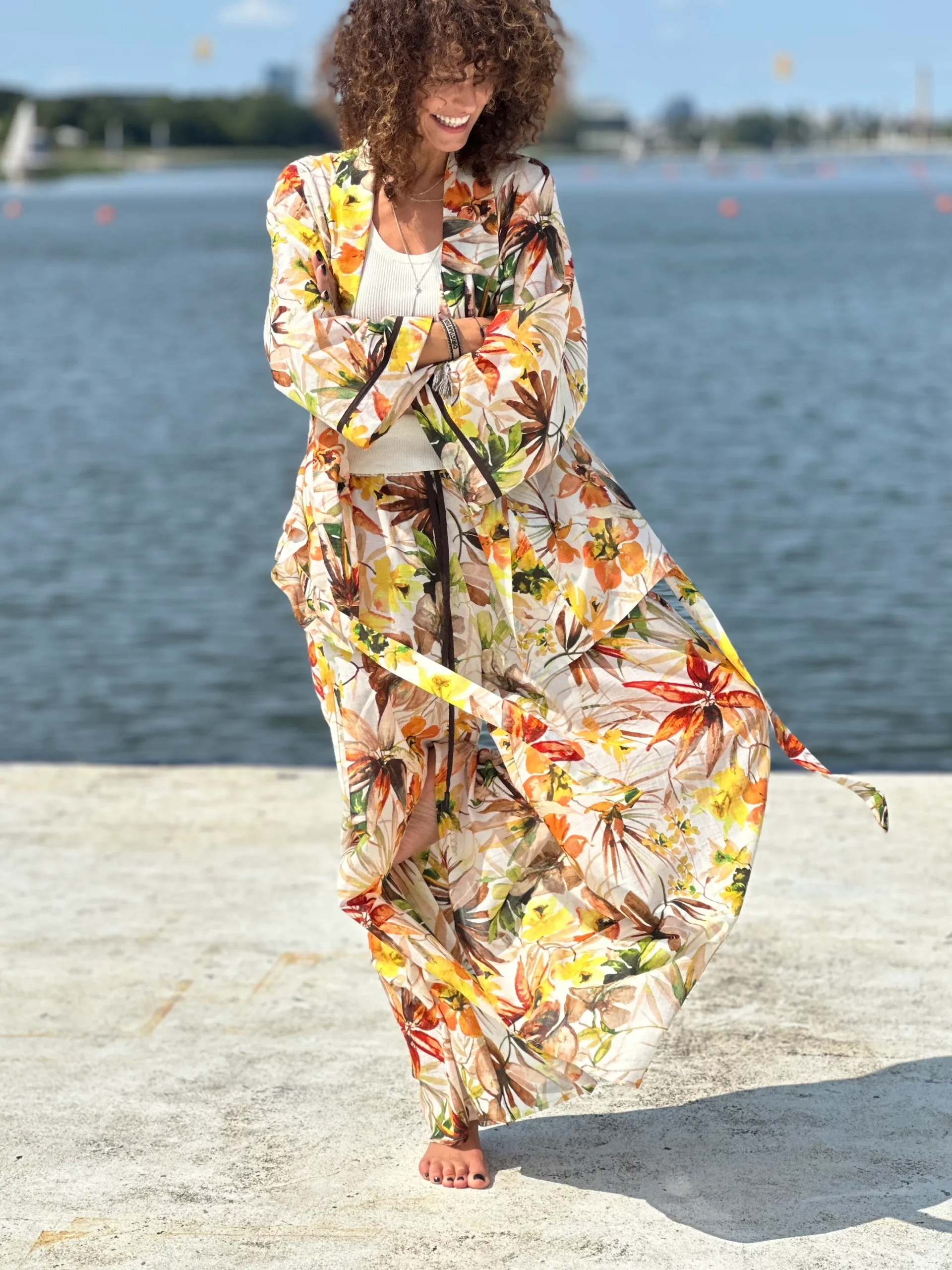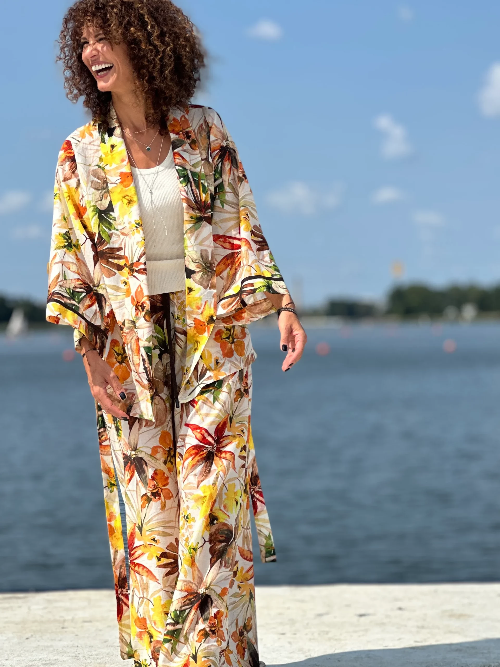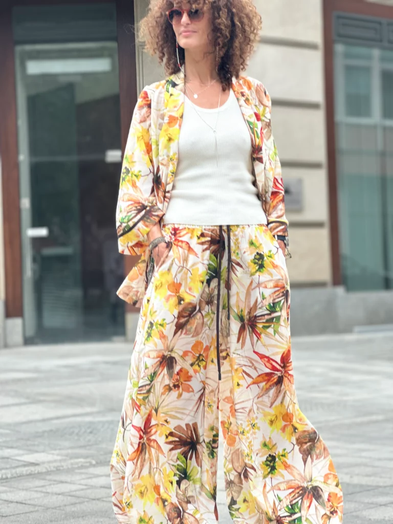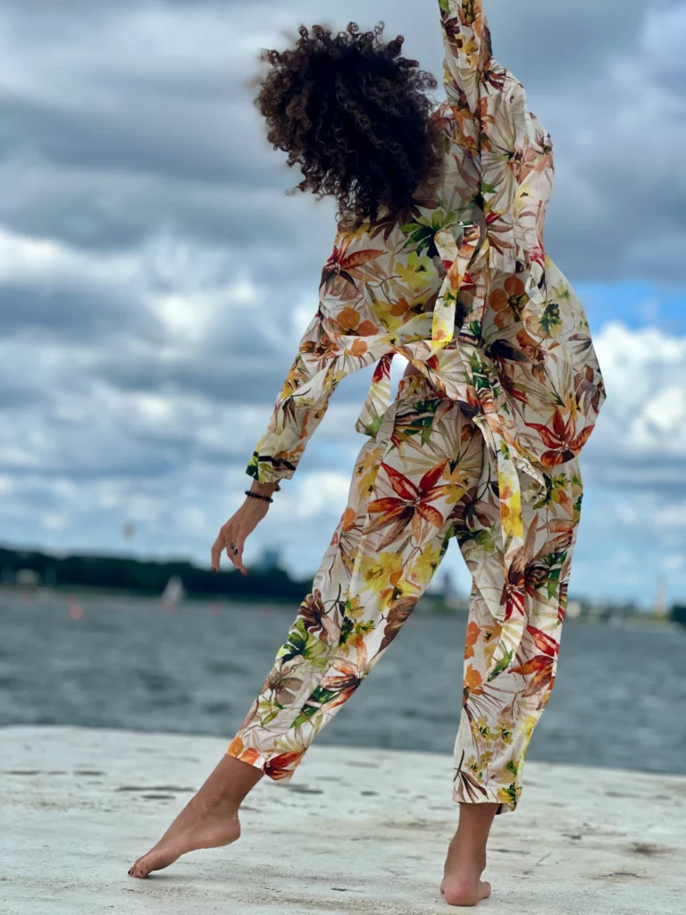 Ein Set, das so luftig ist, dass es schwer zu beschreiben ist – man muss es anziehen und anfassen. Die Kombination aus Batistbaumwolle und Seide ist ein Luxus für den Körper an einem Sommertag. Das Set besteht aus einem Kimono-Oberteil, das pure Weiblichkeit ausstrahlt, und zwei völlig unterschiedlichen Hosen – einer weiten und einer Baggy-Hose. Es lässt sich auch wunderbar mit Leinen kombinieren, also probieren Sie verschiedene Kombinationen aus natürlichen Stoffen aus und begeistern Sie Ihre Umgebung.