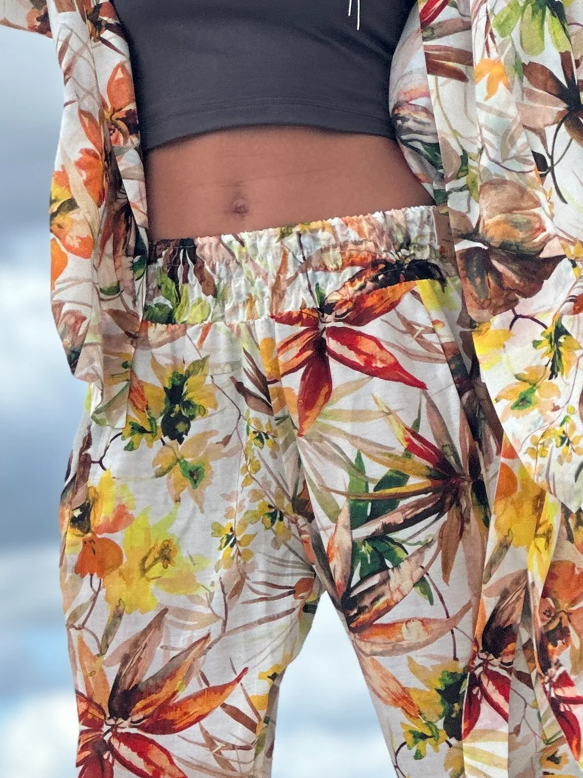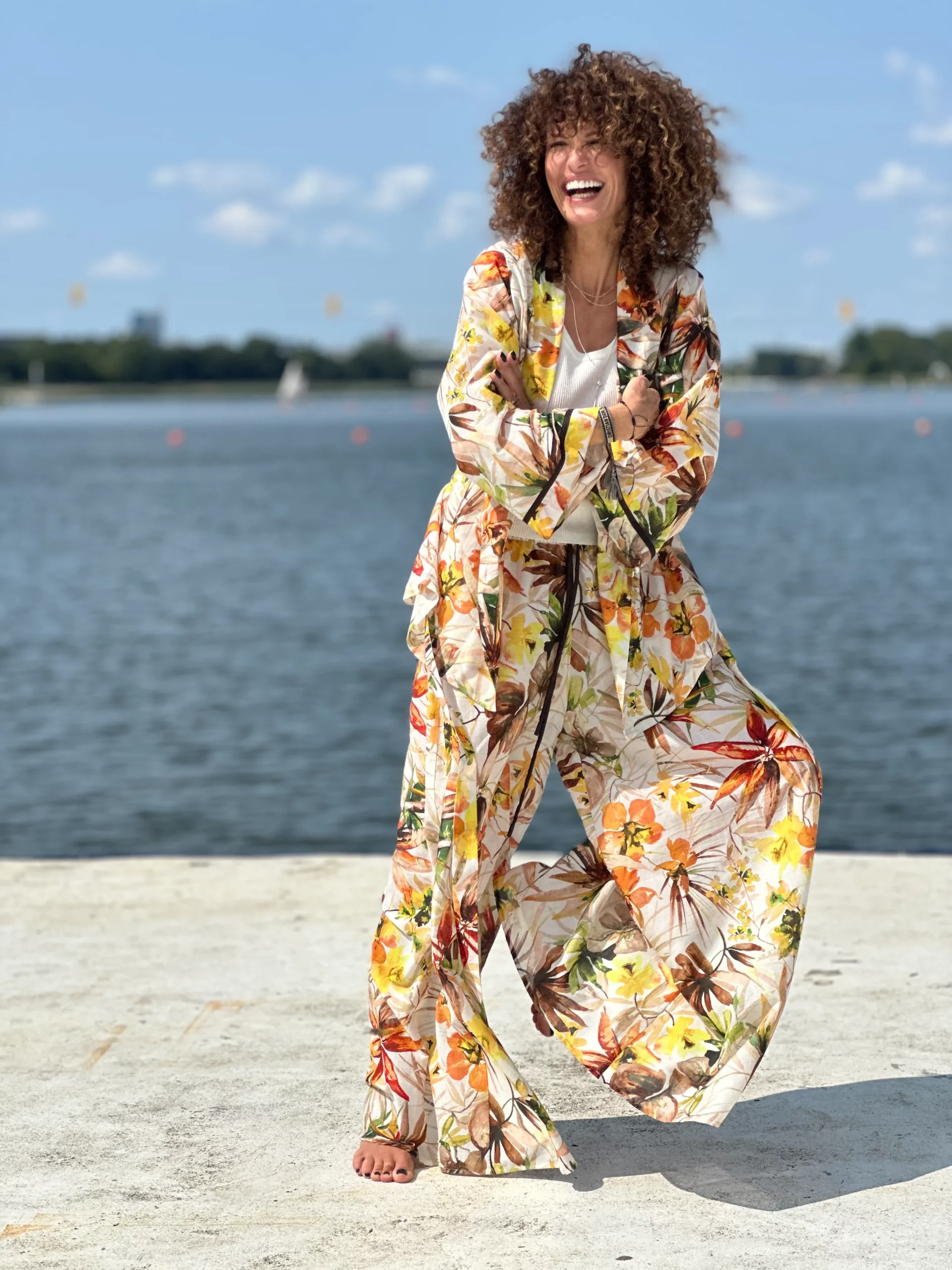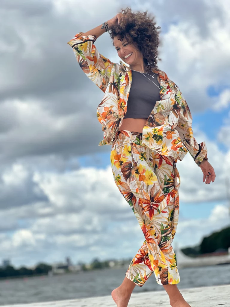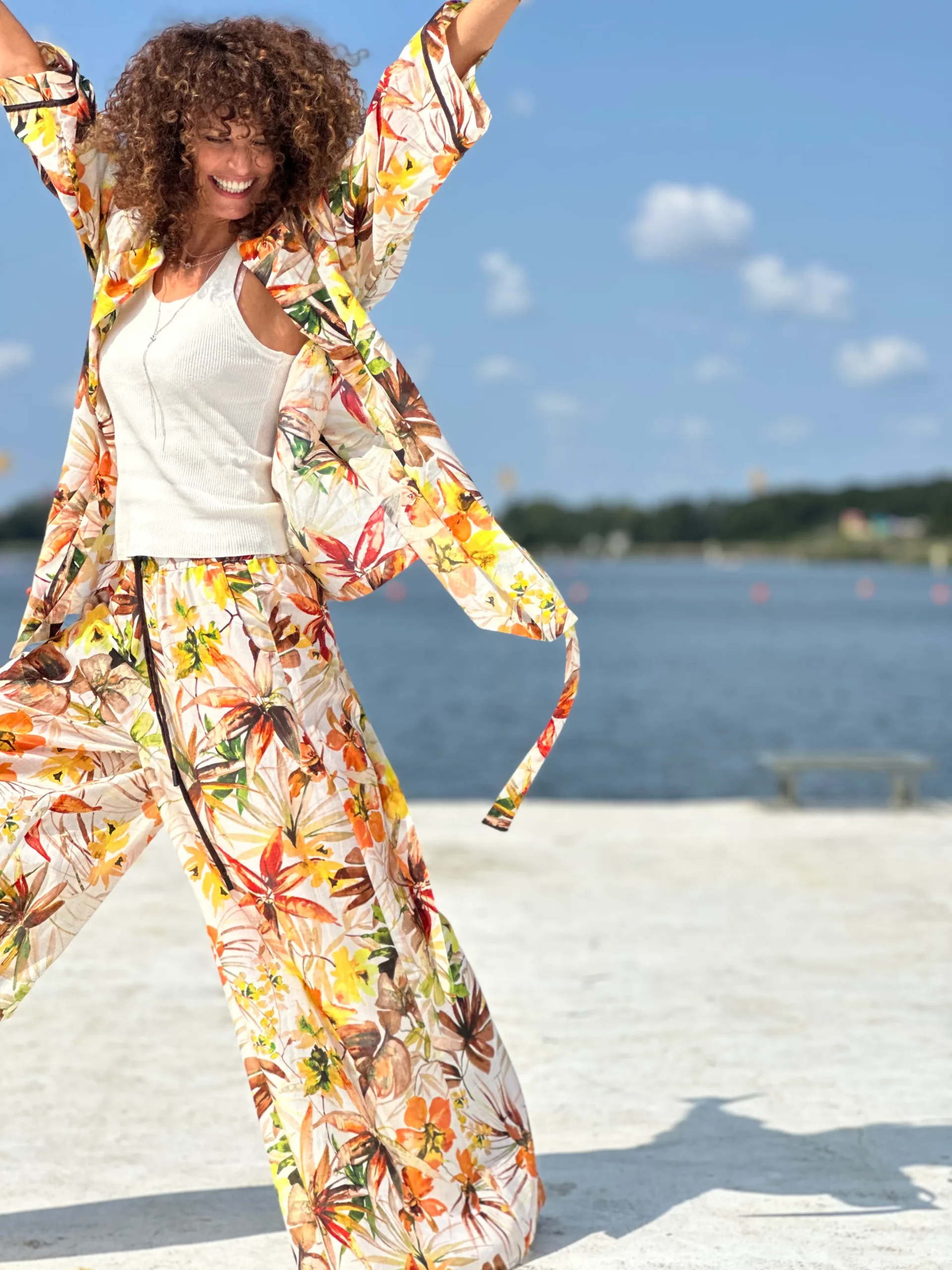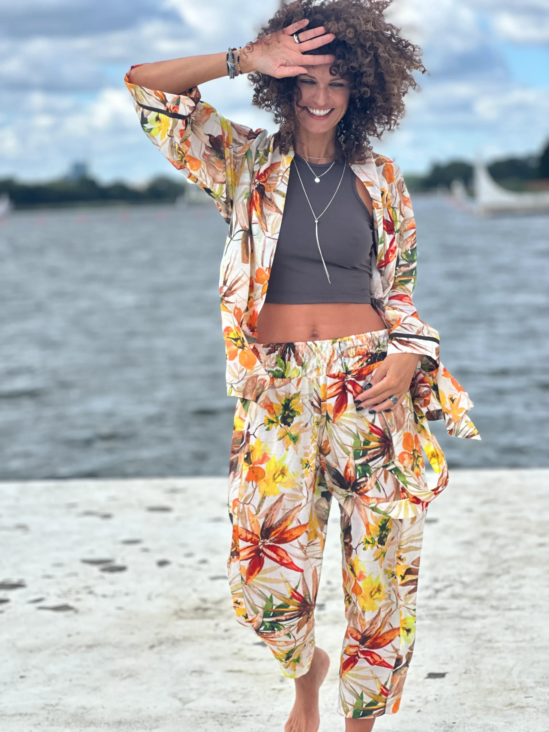 Ein Set, das so luftig ist, dass es schwer zu beschreiben ist – man muss es anziehen und anfassen. Die Kombination aus Batistbaumwolle und Seide ist ein Luxus für den Körper an einem Sommertag. Das Set besteht aus einem Kimono-Oberteil, das pure Weiblichkeit ausstrahlt, und zwei völlig unterschiedlichen Hosen – einer weiten und einer Baggy-Hose. Es lässt sich auch wunderbar mit Leinen kombinieren, also probieren Sie verschiedene Kombinationen aus natürlichen Stoffen aus und begeistern Sie Ihre Umgebung.