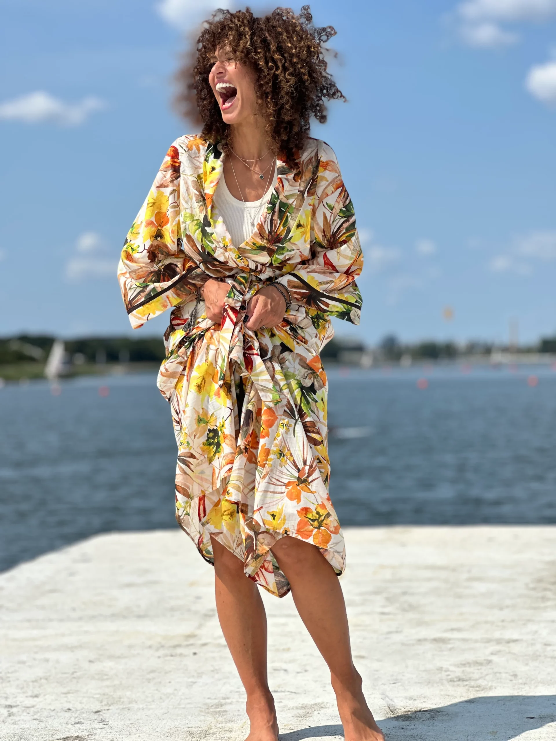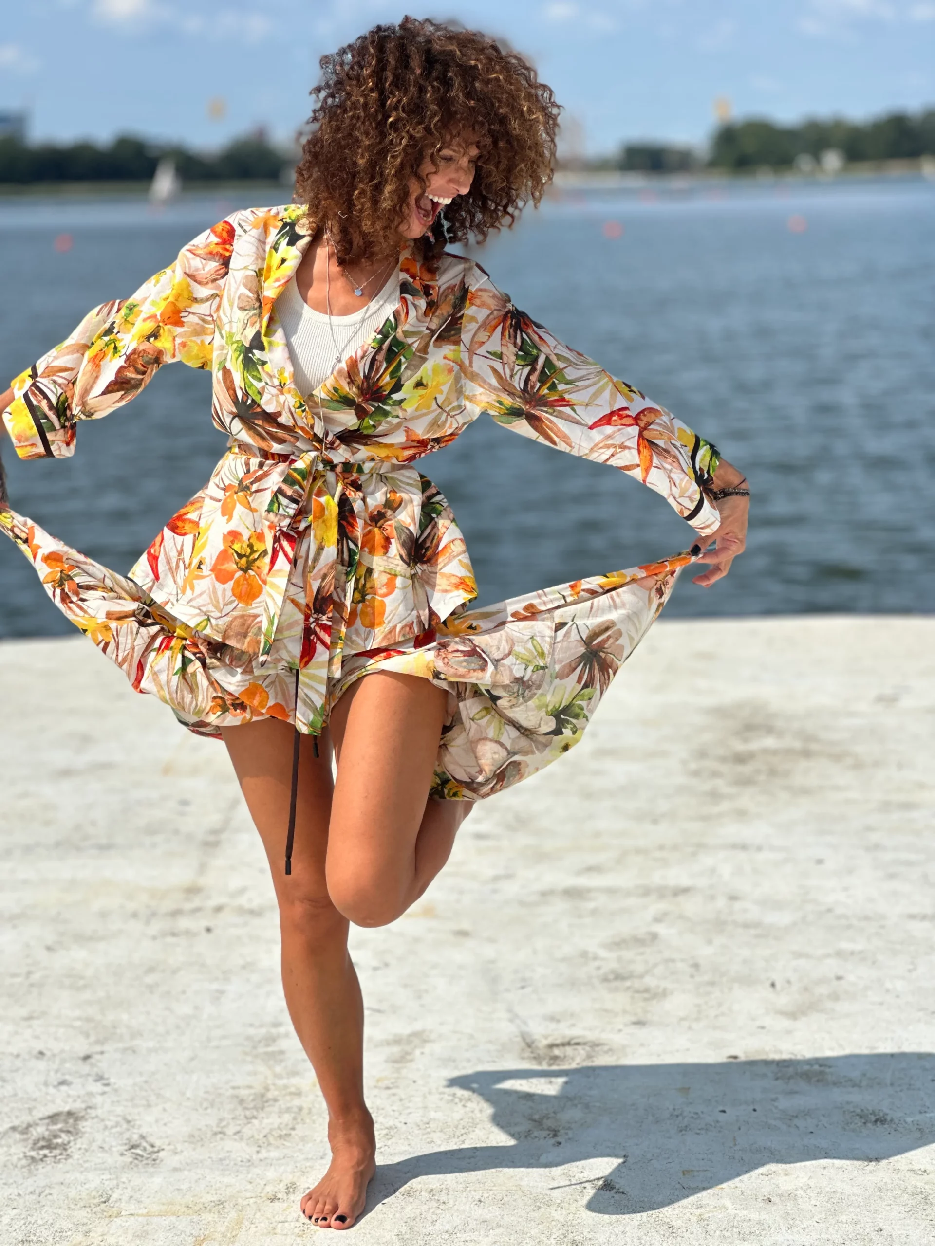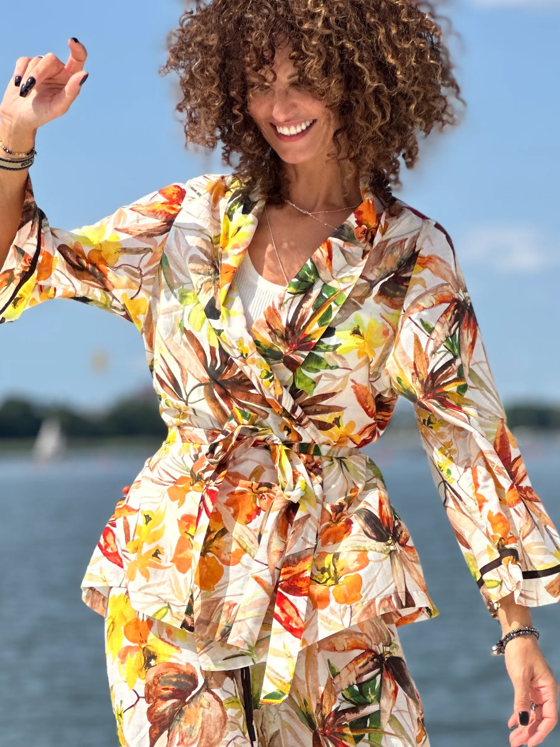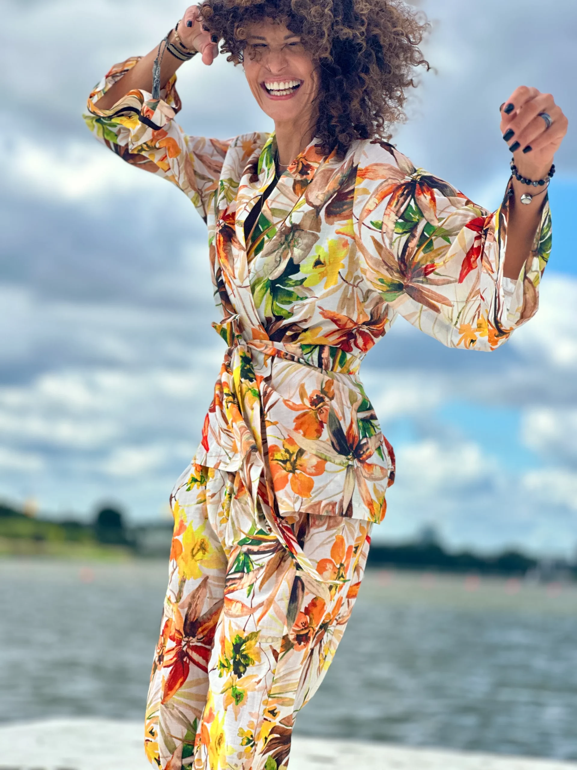Ein Set, das so luftig ist, dass es schwer zu beschreiben ist – man muss es anziehen und anfassen. Die Kombination aus Batistbaumwolle und Seide ist ein Luxus für den Körper an einem Sommertag. Das Set besteht aus einem Kimono-Oberteil, das pure Weiblichkeit ausstrahlt, und zwei völlig unterschiedlichen Hosen – einer weiten und einer Baggy-Hose. Es lässt sich auch wunderbar mit Leinen kombinieren, also probieren Sie verschiedene Kombinationen aus natürlichen Stoffen aus und begeistern Sie Ihre Umgebung.
