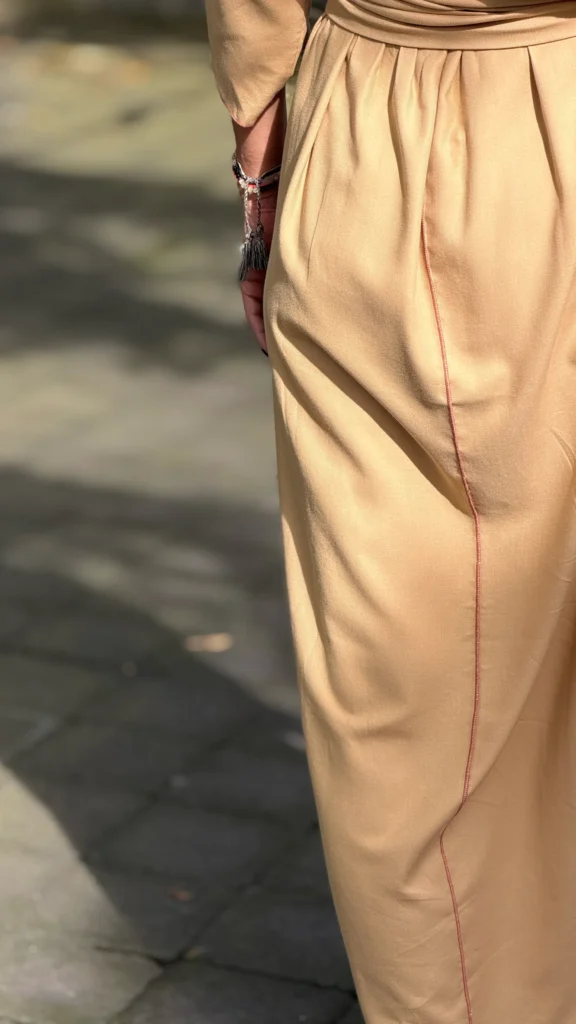 Passen Sie bei diesem Modell die Länge an und wählen Sie die Farbe der Nähte aus.