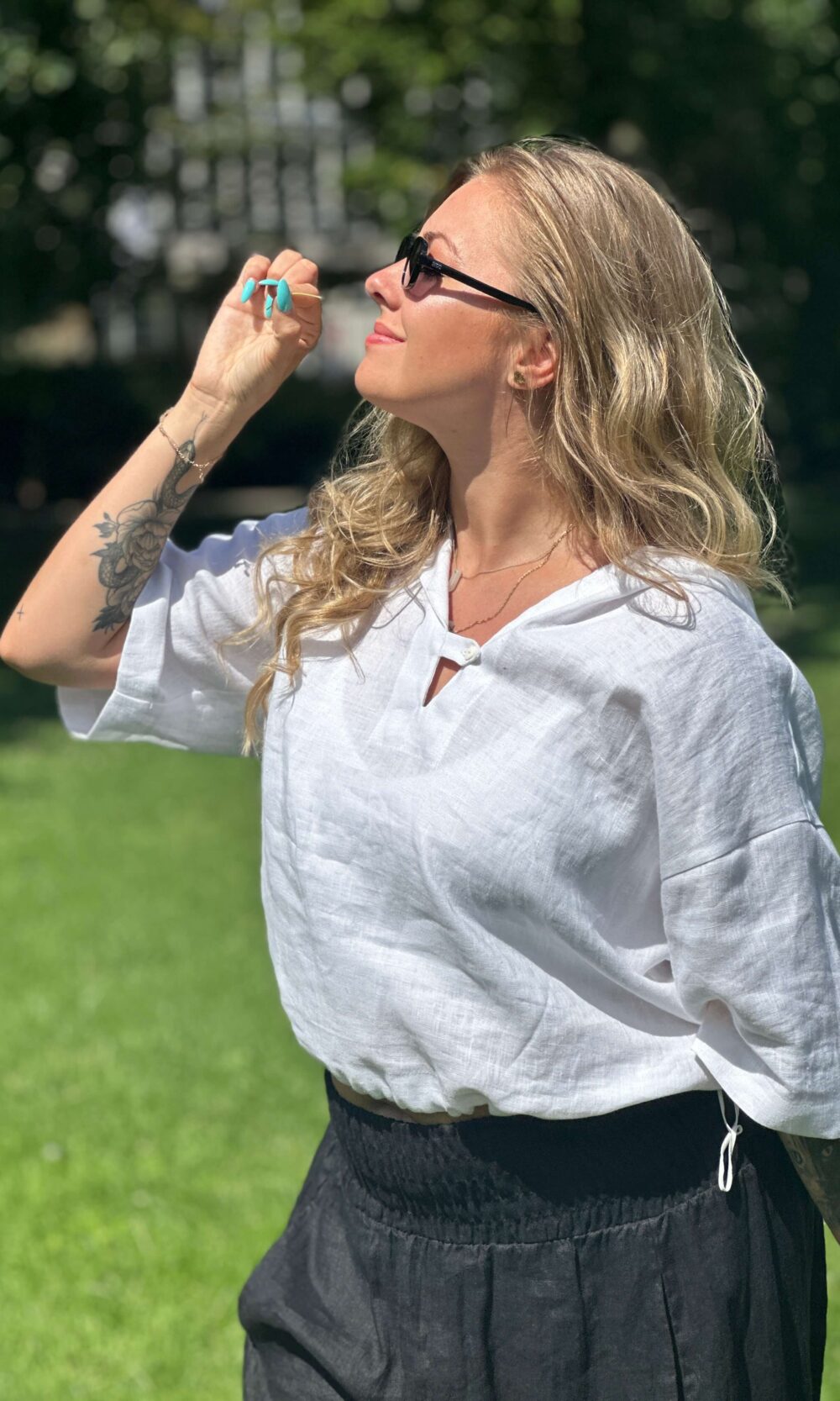 Sehr gutes Material, gut geschnitten, für den Alltag mit Turnschuhen und Jeansjacke oder schicken Schuhen und einer Hemdbluse. Ich trage Größe 40, habe die M/L genommen und sie ist perfekt - etwas locker, aber genau das, was ich gesucht habe. Ich liebe sie jetzt schon!