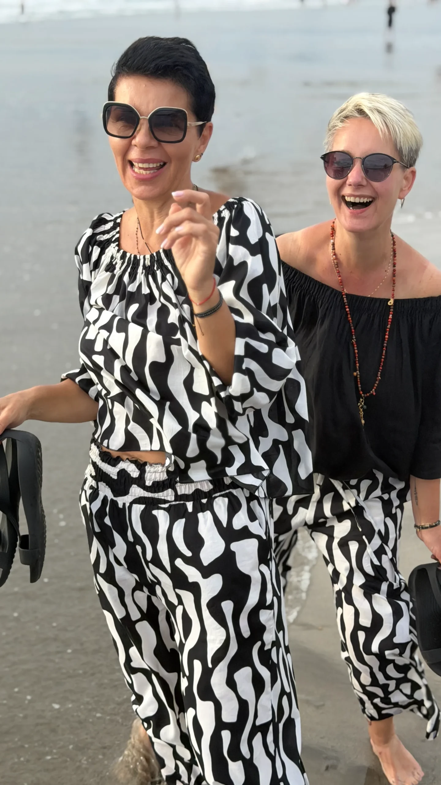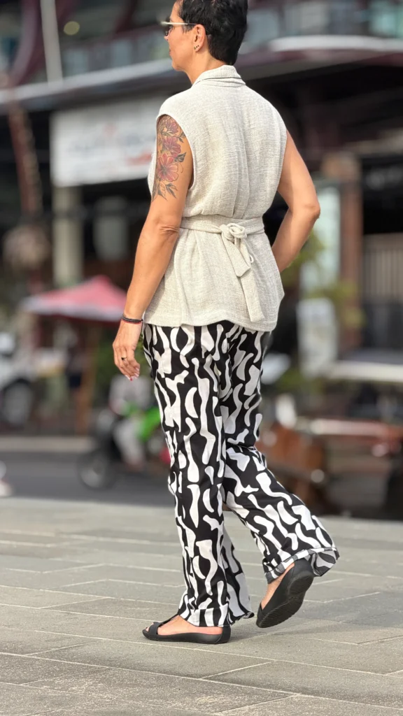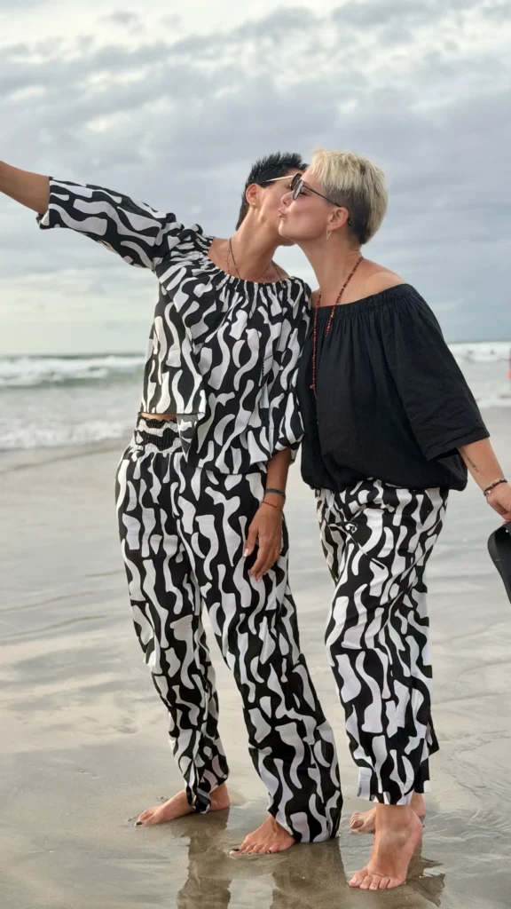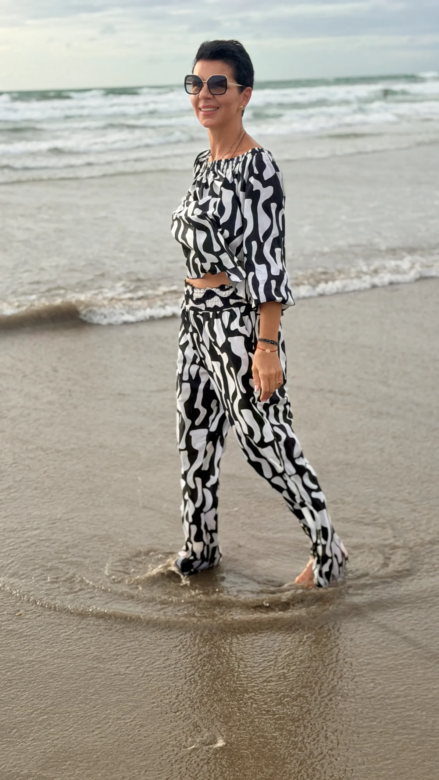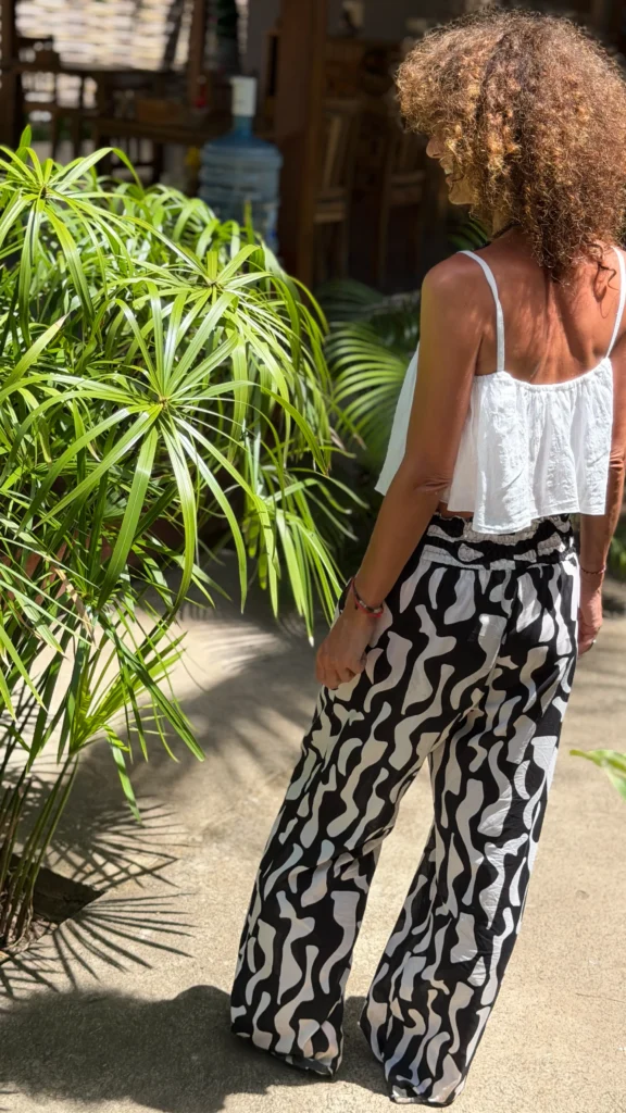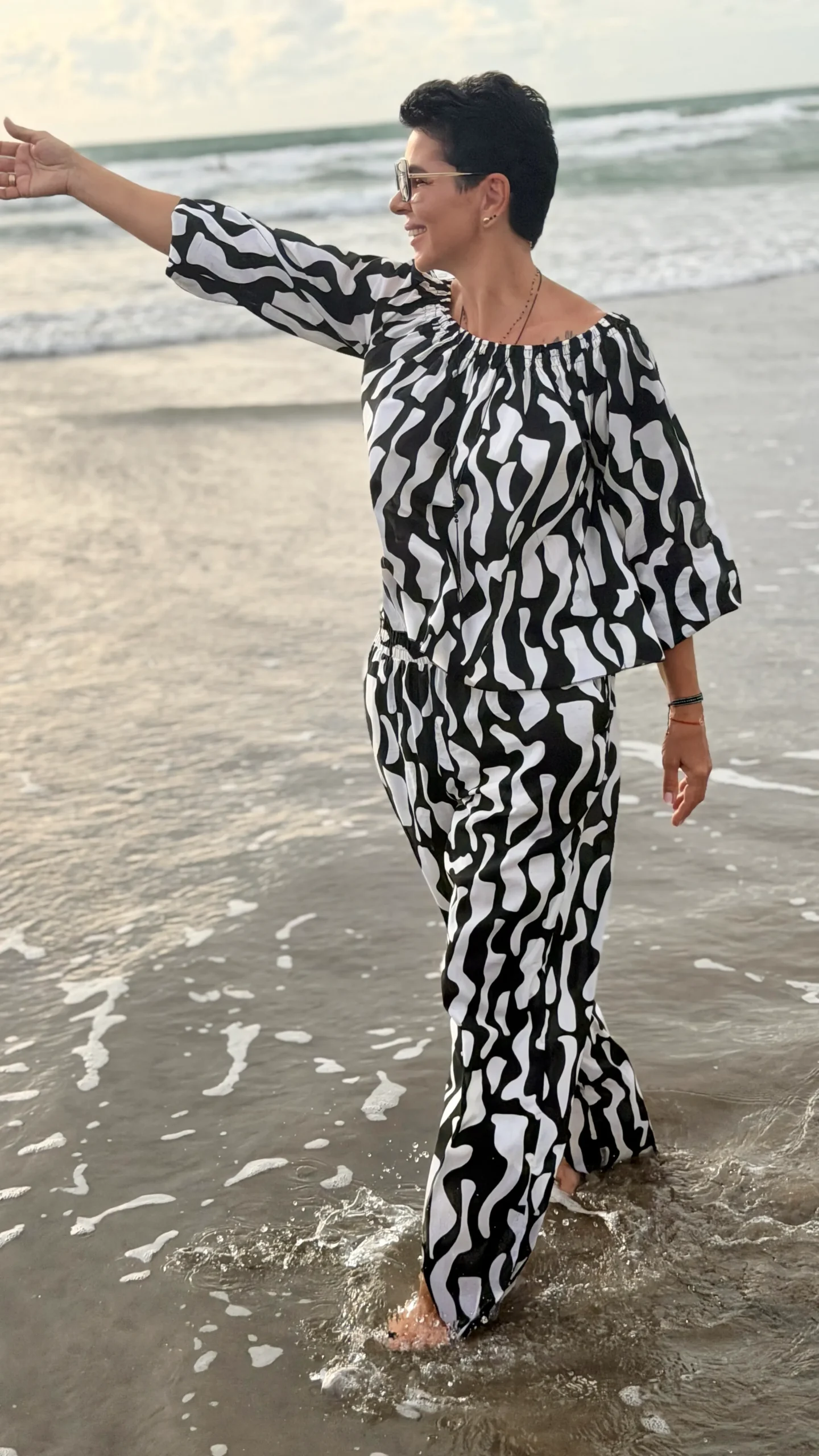Your favourite colour combination is a classic - black and vanilla? Here you have a ready-made solution. The set includes an oversized blouse and trousers in two cuts to choose from - long trousers or 7/8 trousers. Match the length of the trousers and top to your height and enjoy the lightness of the batiste on warm days.