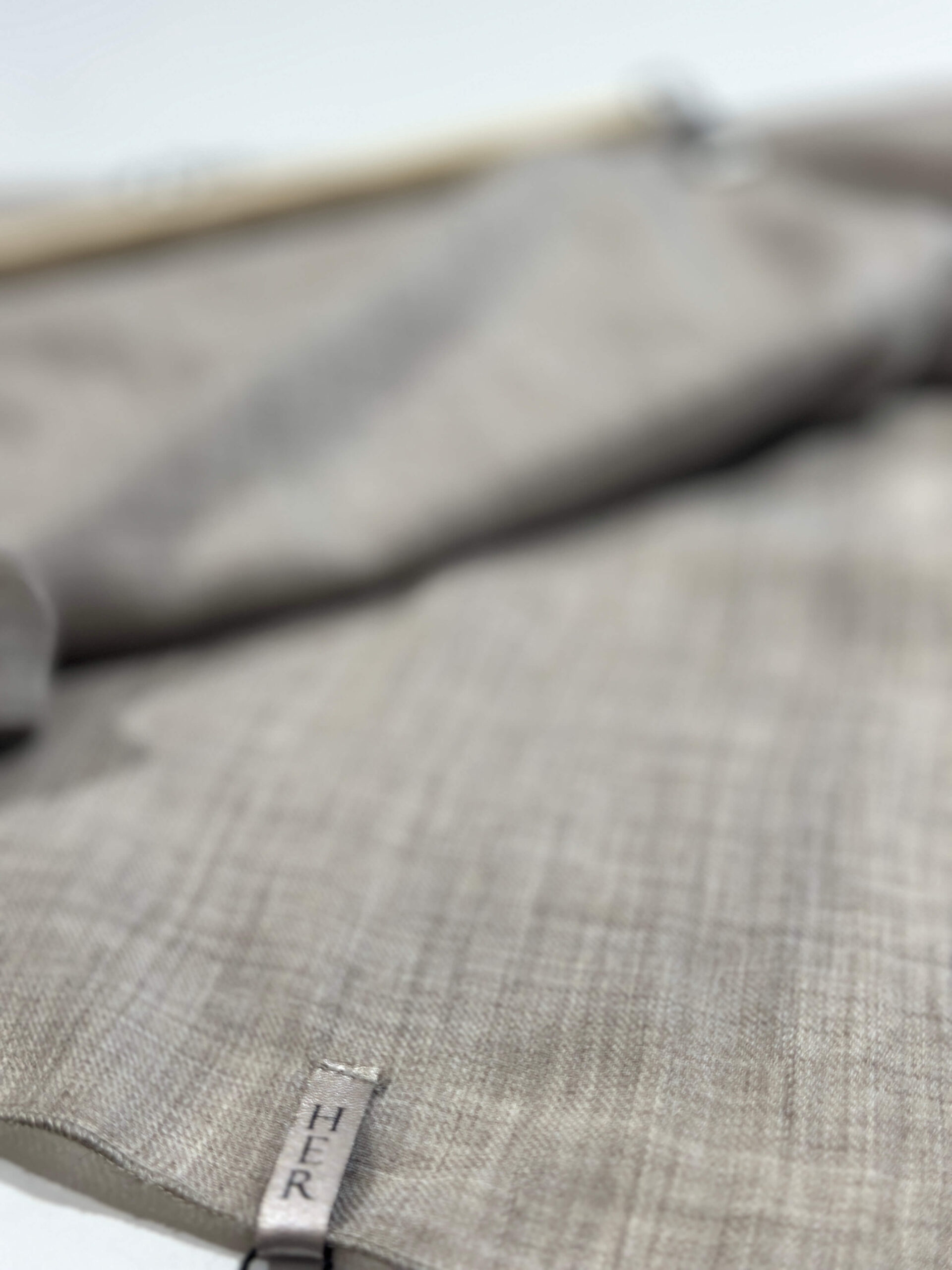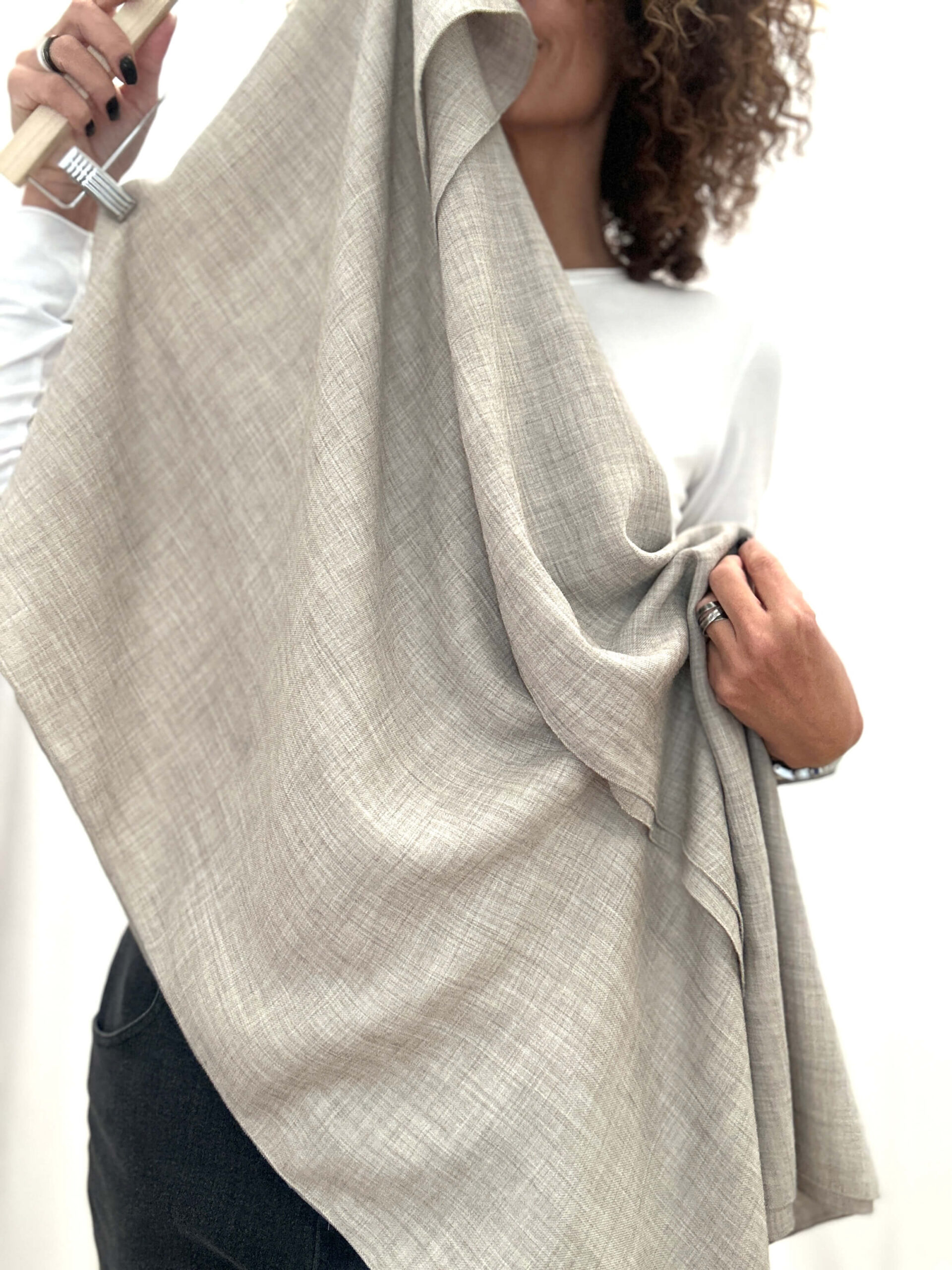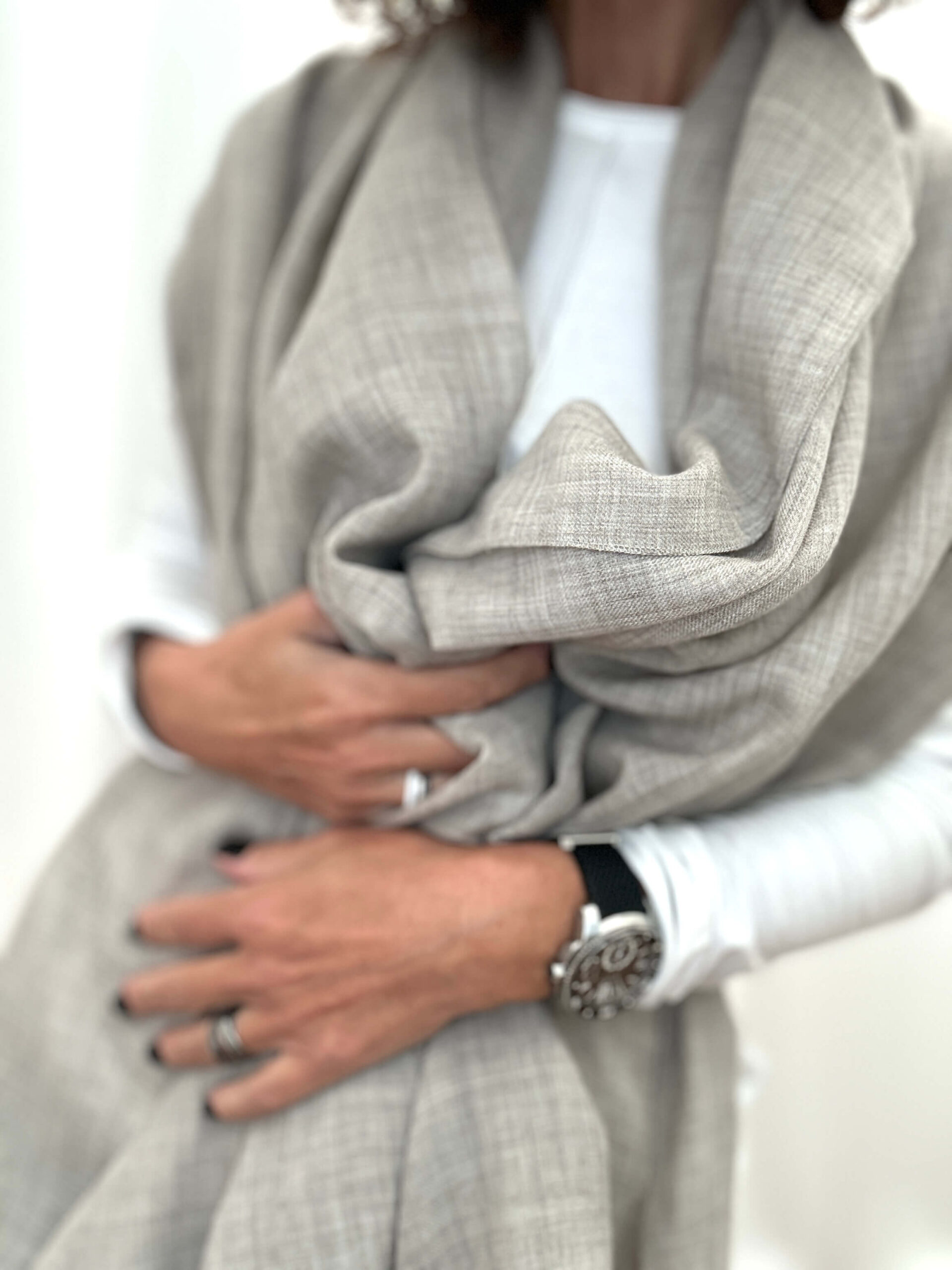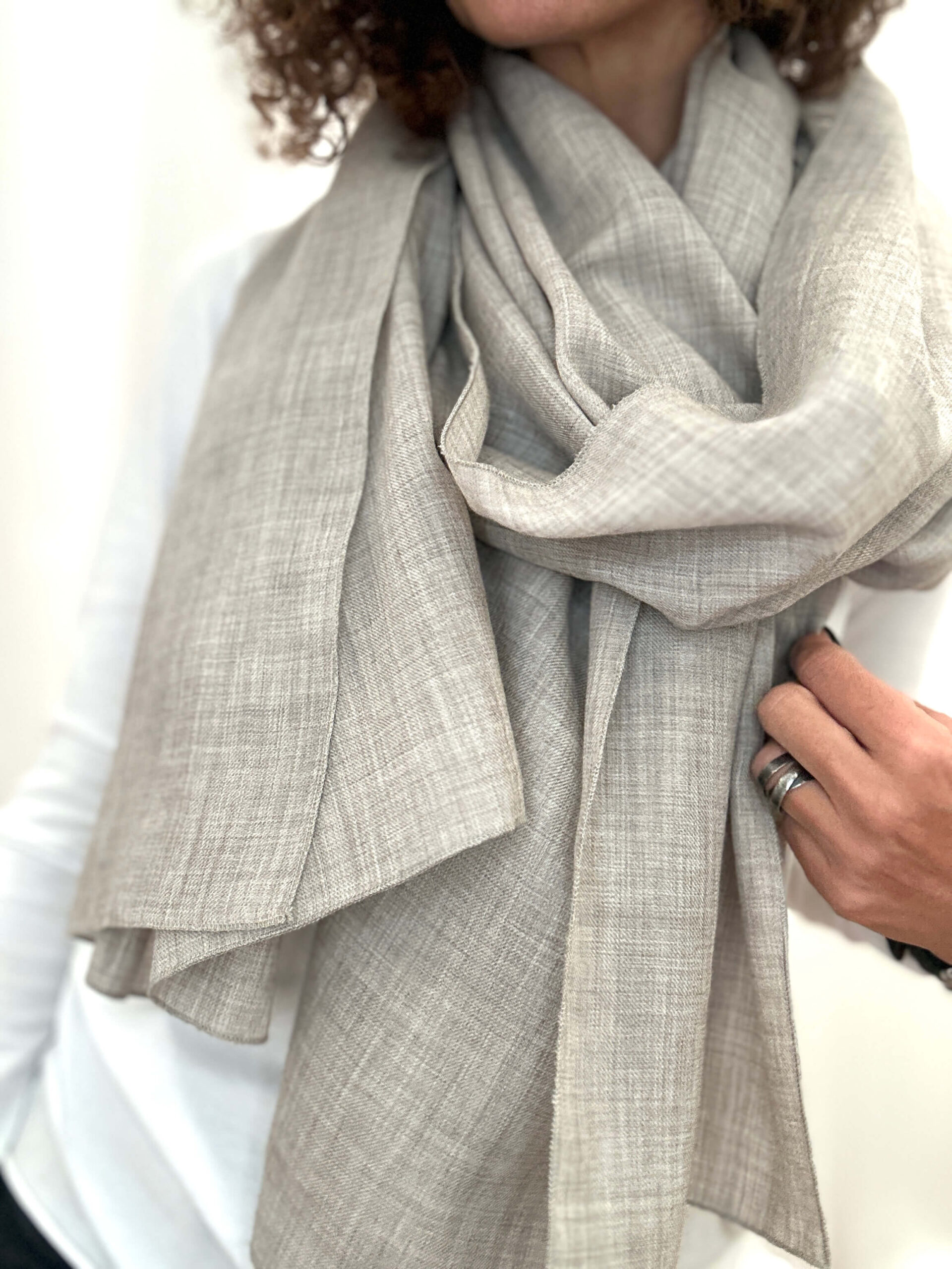 Mgiełka wełniana w odcieniu chłodnego beżu , małe logo